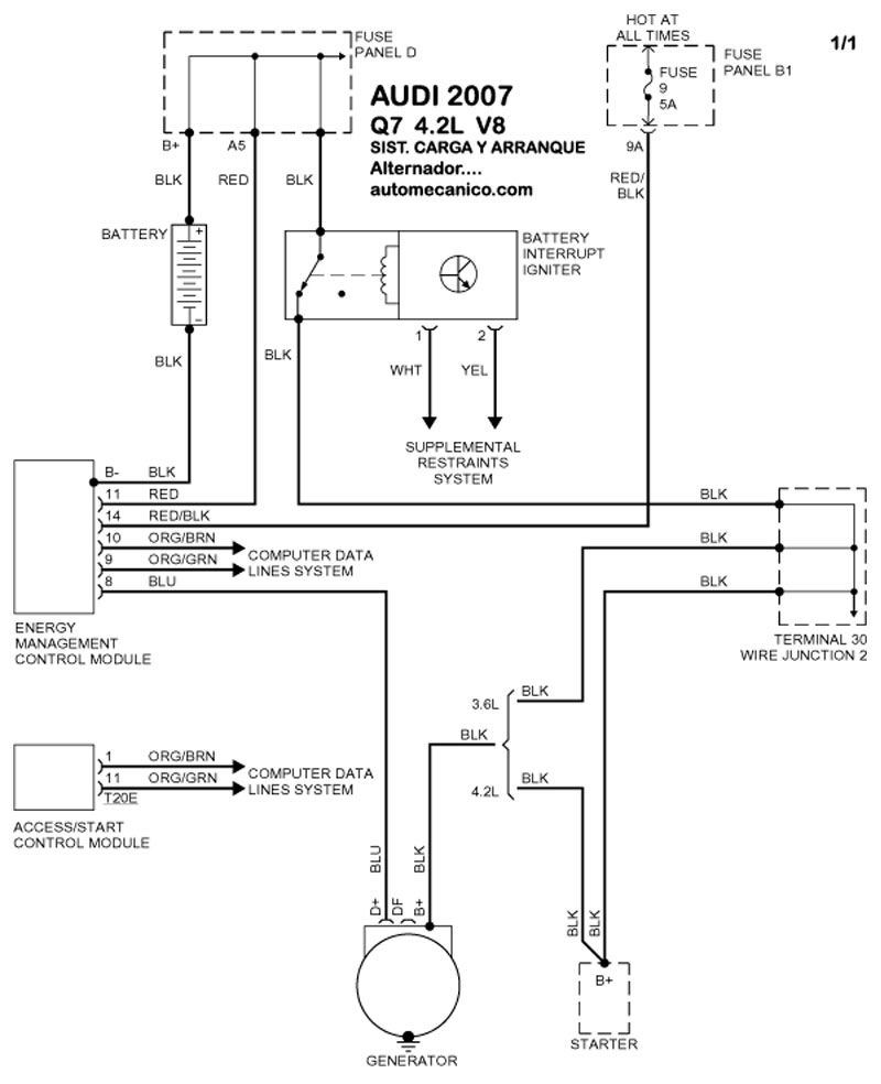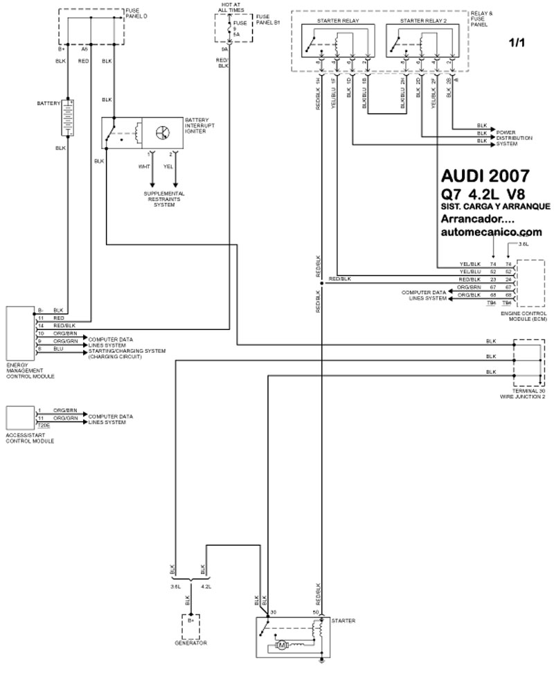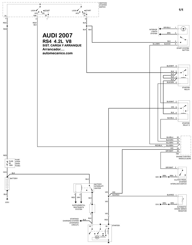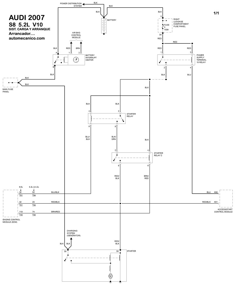| DIAGRAMAS - SISTEMA DE CARGA Y ARRANQUE - AUDI 2007 - Mecanica Automotriz - INDICE |