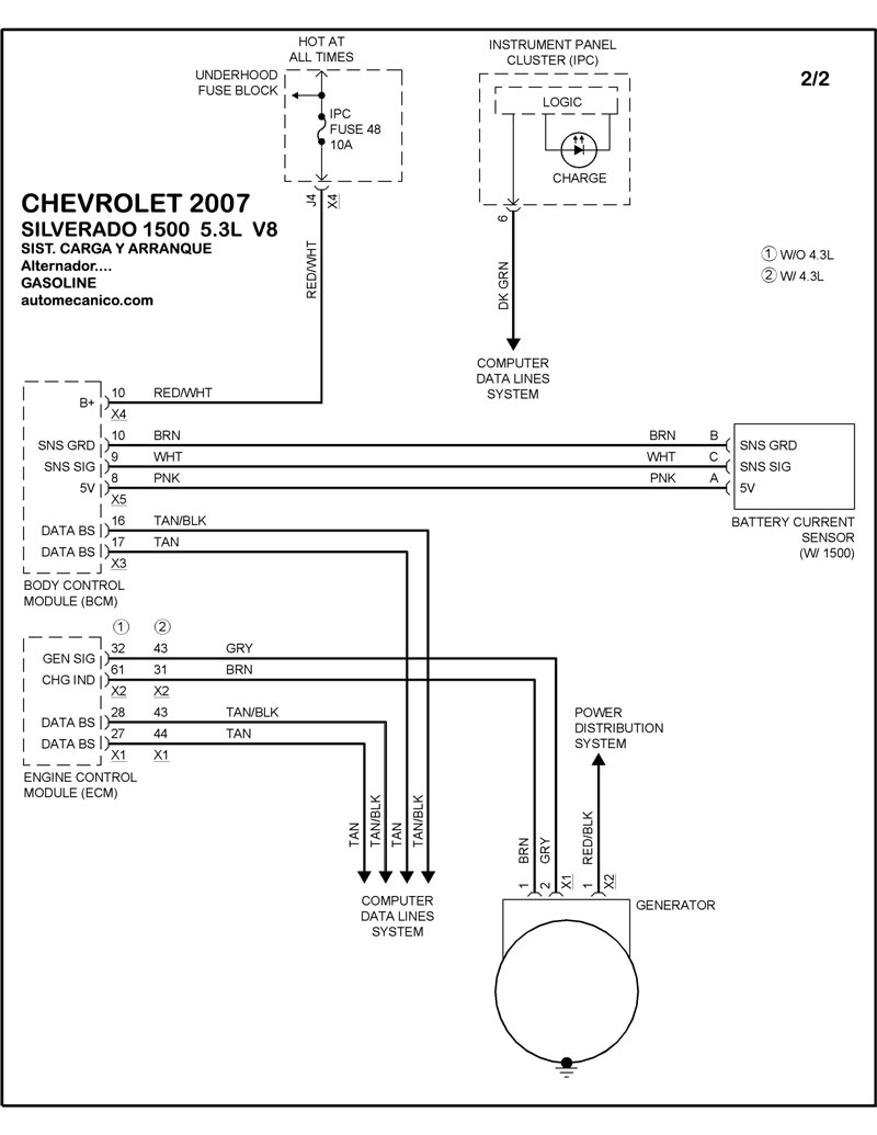 | 4.8L 8 CIL. GASOLINA ALTERNADOR | DIAGRAMA SISTEMA DE CARGA |