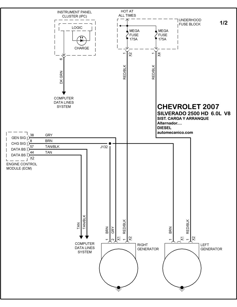 | 6.0L 8 CIL. ALTERNADOR | DIAGRAMA SISTEMA DE CARGA |