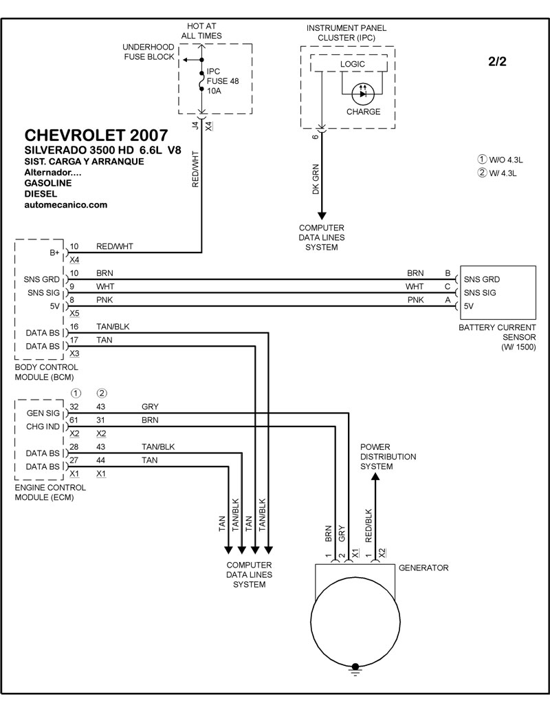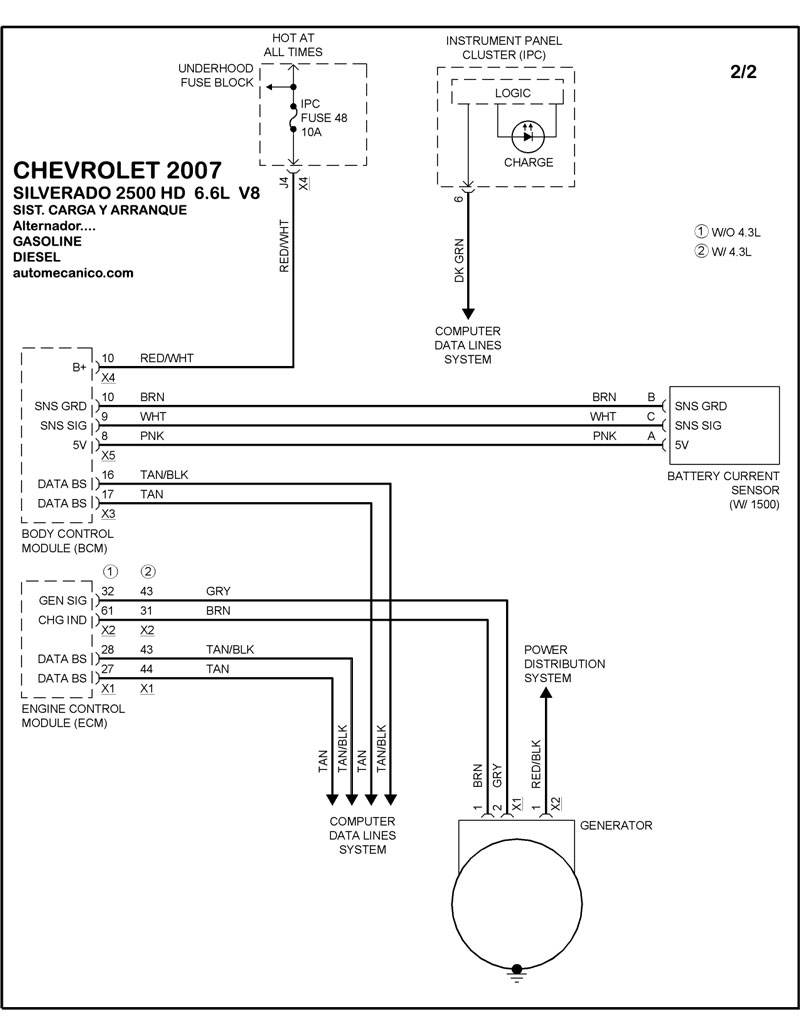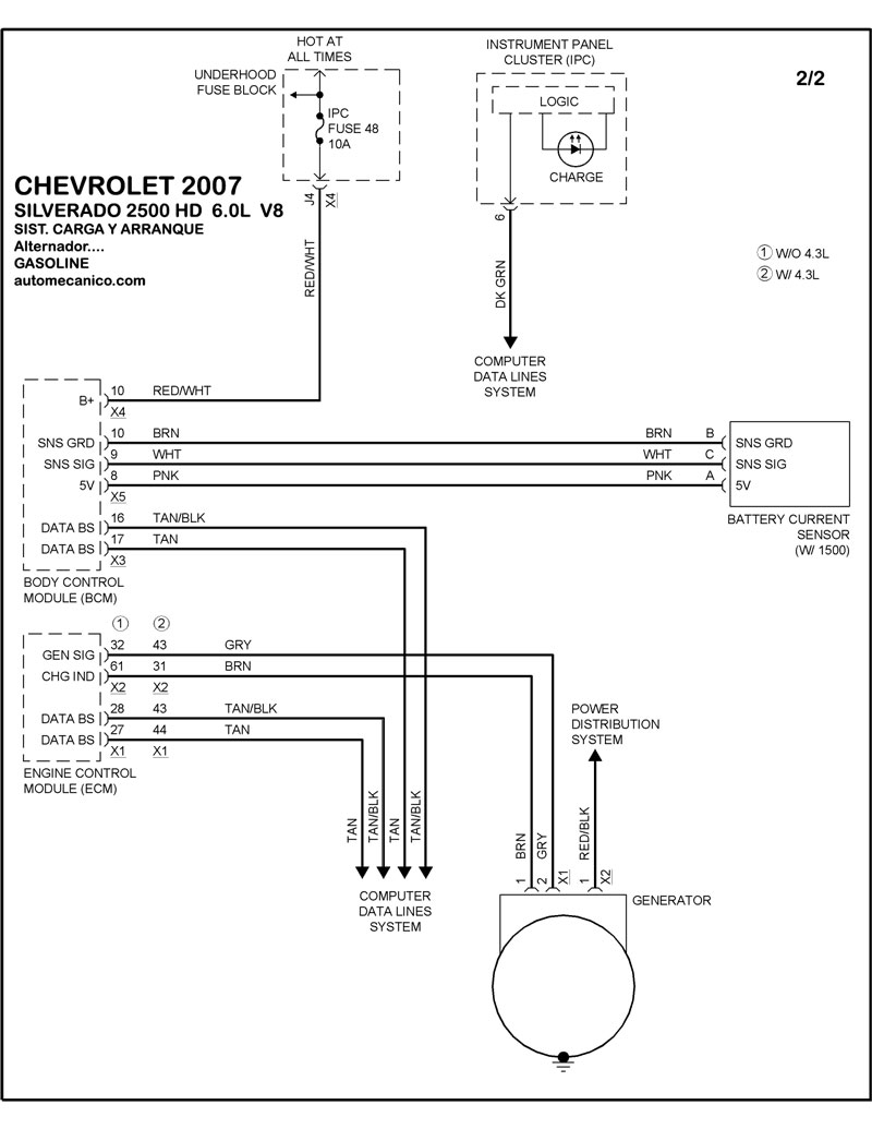 | 6.0L 8 CIL. GASOLINA ALTERNADOR | DIAGRAMA SISTEMA DE CARGA |