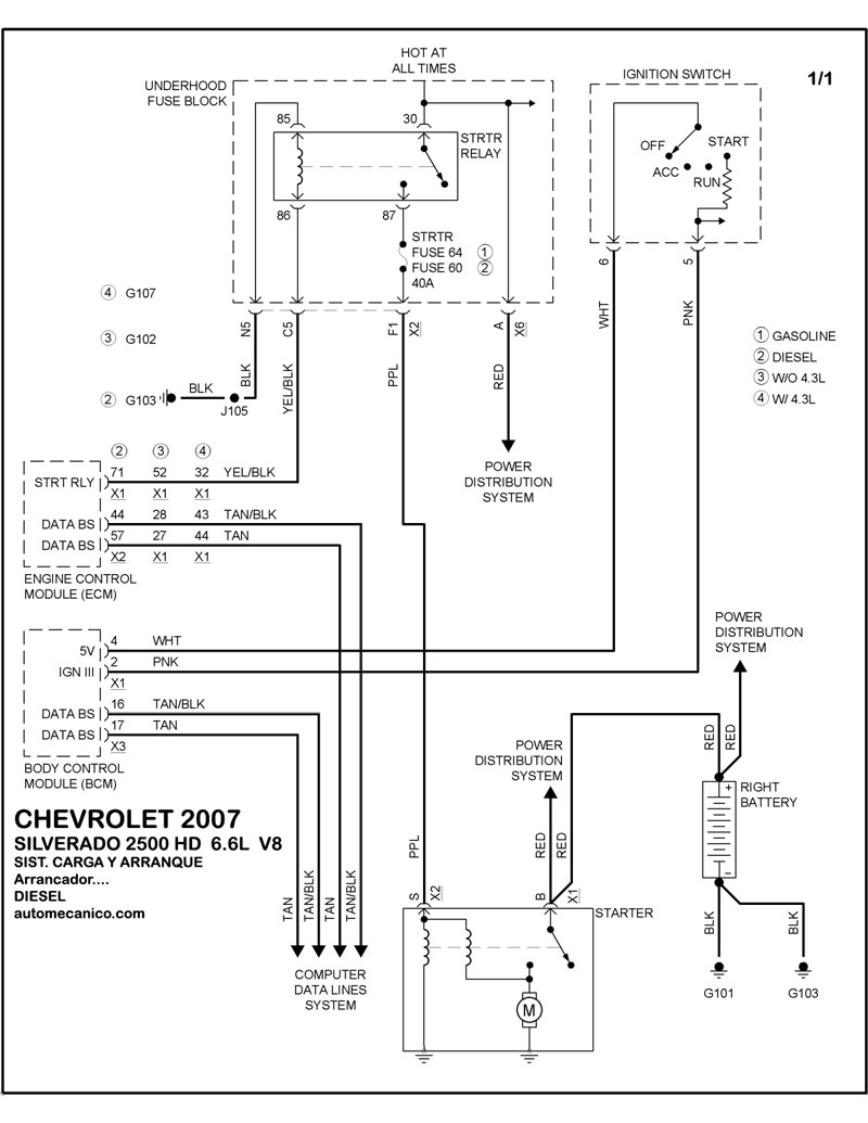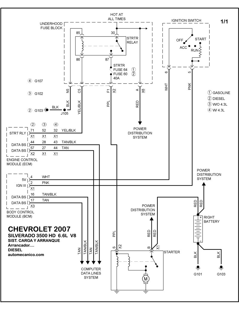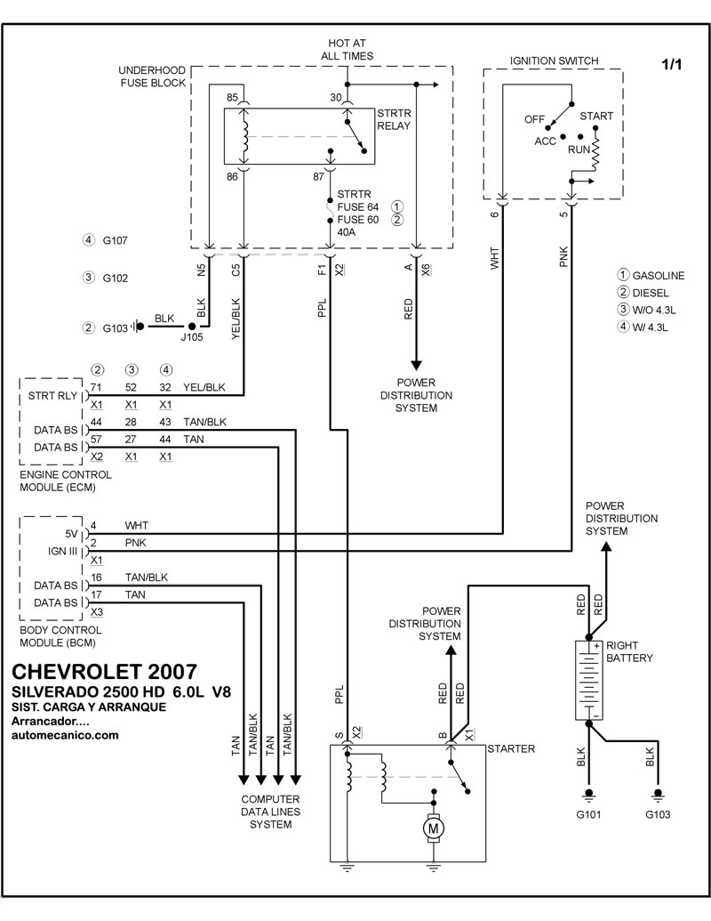 | 6.0L 8 CIL. DIESEL ARRANCADOR T/A | DIAGRAMA SISTEMA DE ARRANQUE |