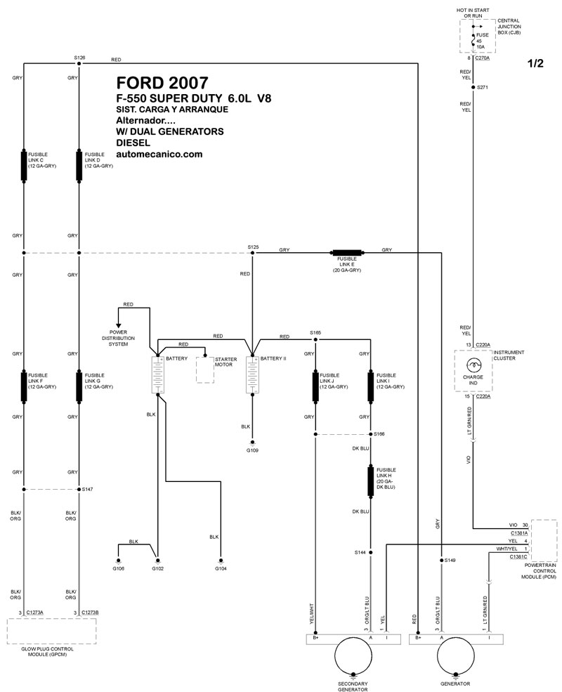 | 6.0L 8 CIL. W/ DUAL GENERATORS DIESEL ALTERN. | DIAGRAMA SISTEMA DE CARGA |
