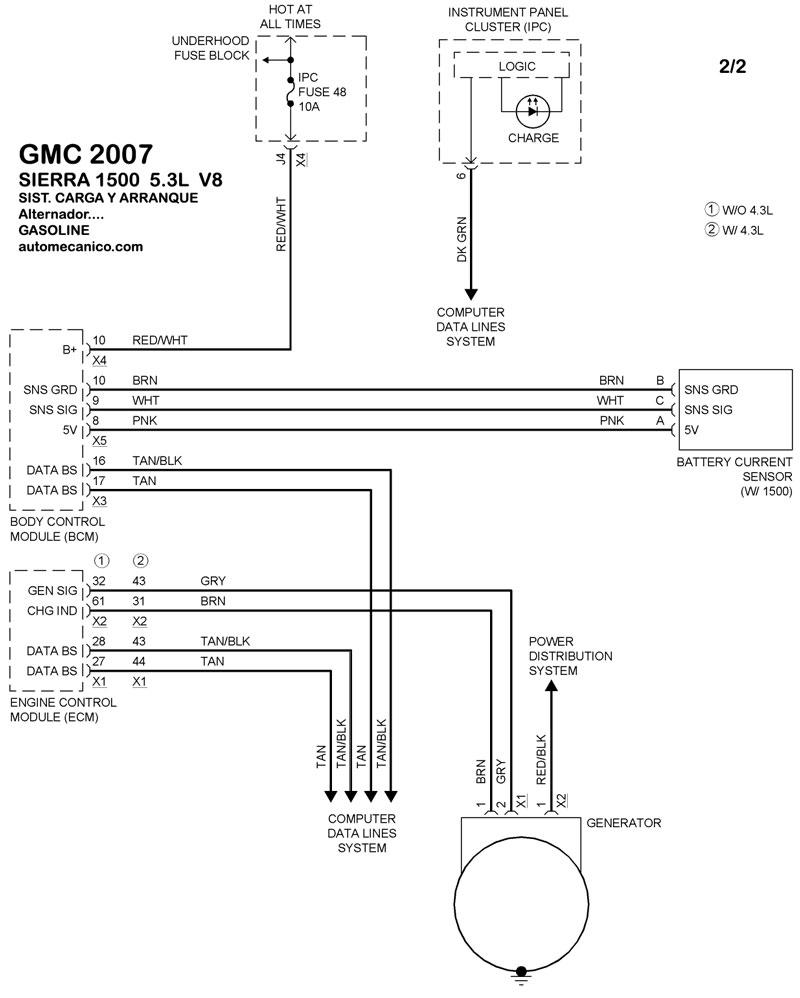 | 4.8L 6 CIL. GASOLINE ALTERNADOR | DIAGRAMA SISTEMA DE CARGA |