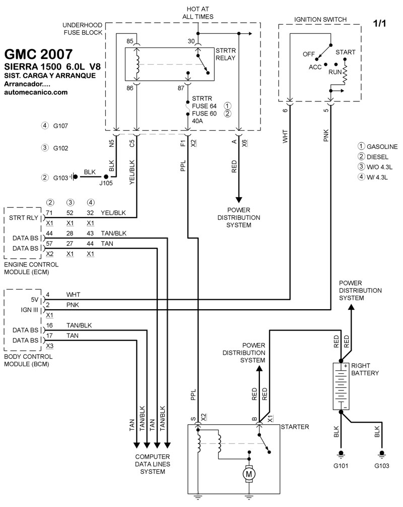 | DIAGRAMAS - SISTEMA DE CARGA Y ARRANQUE - GMC 2007 - Mecanica Automotriz - INDICE |