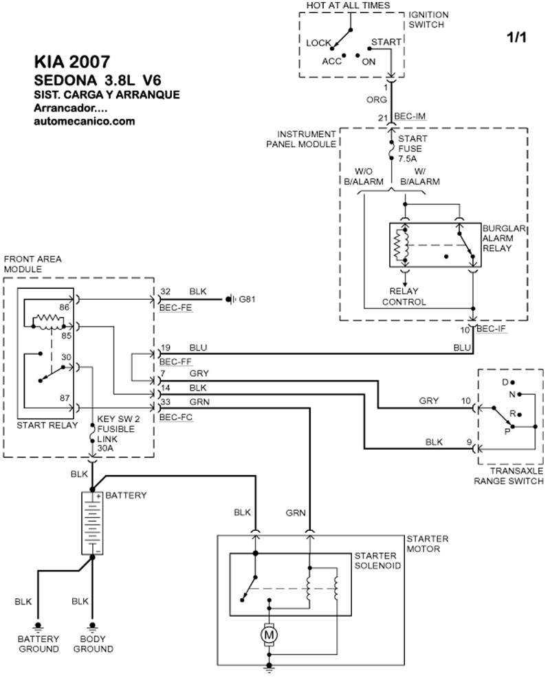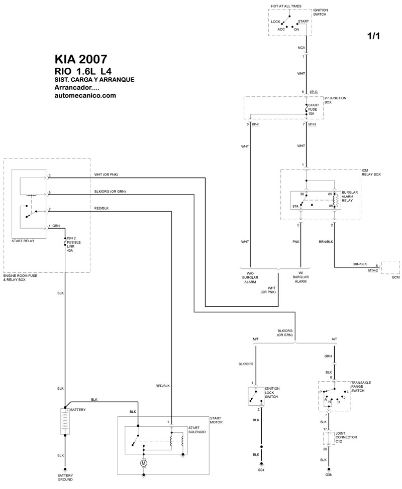 | DIAGRAMAS - SISTEMA DE CARGA Y ARRANQUE - KIA 2007 - Mecanica Automotriz - INDICE |