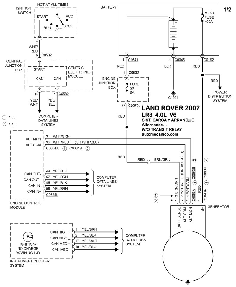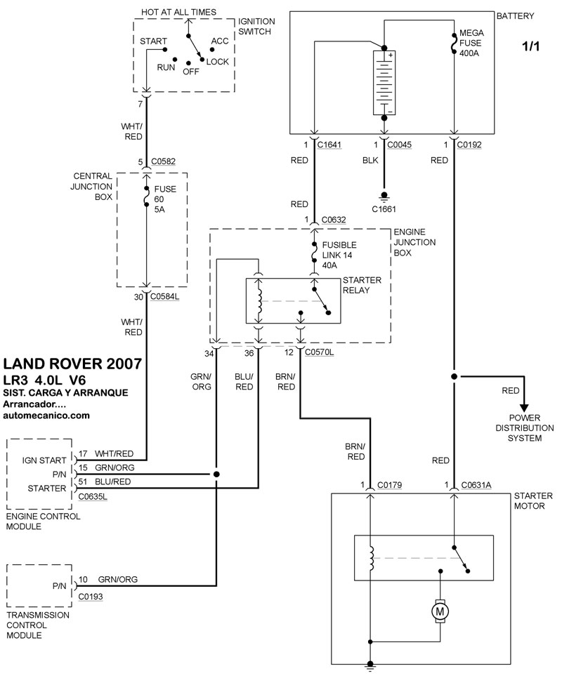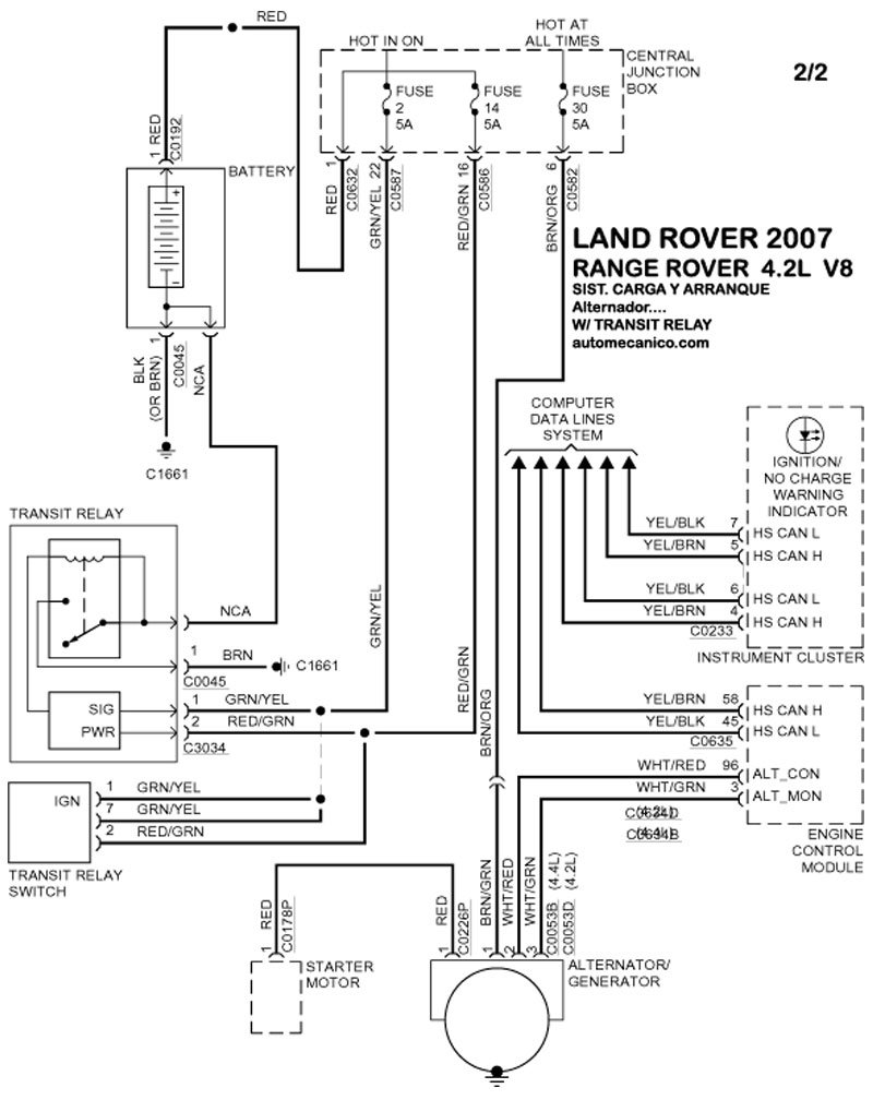 | DIAGRAMAS - SISTEMA DE CARGA Y ARRANQUE - LAND ROVER 2007 - Mecanica Automotriz - INDICE |