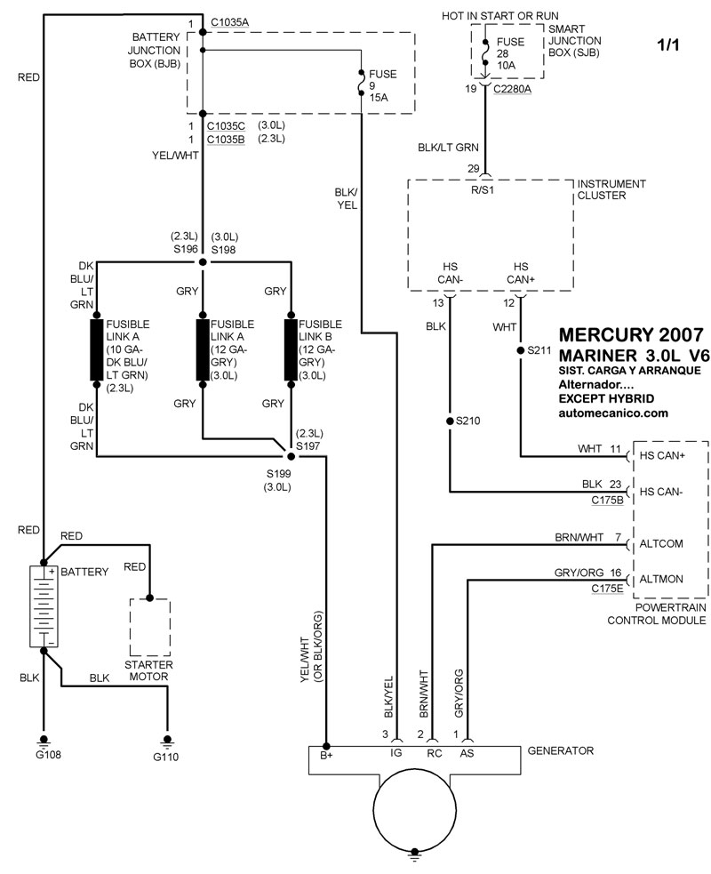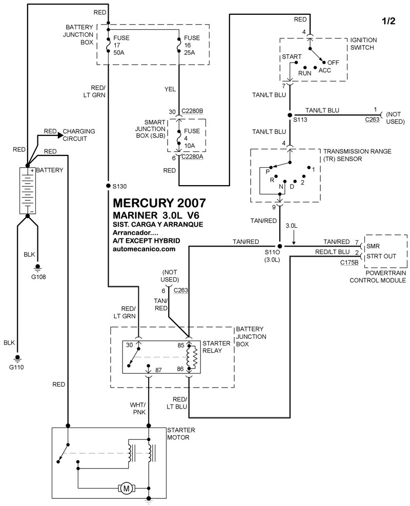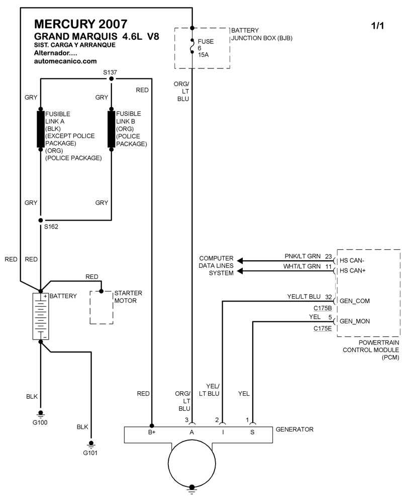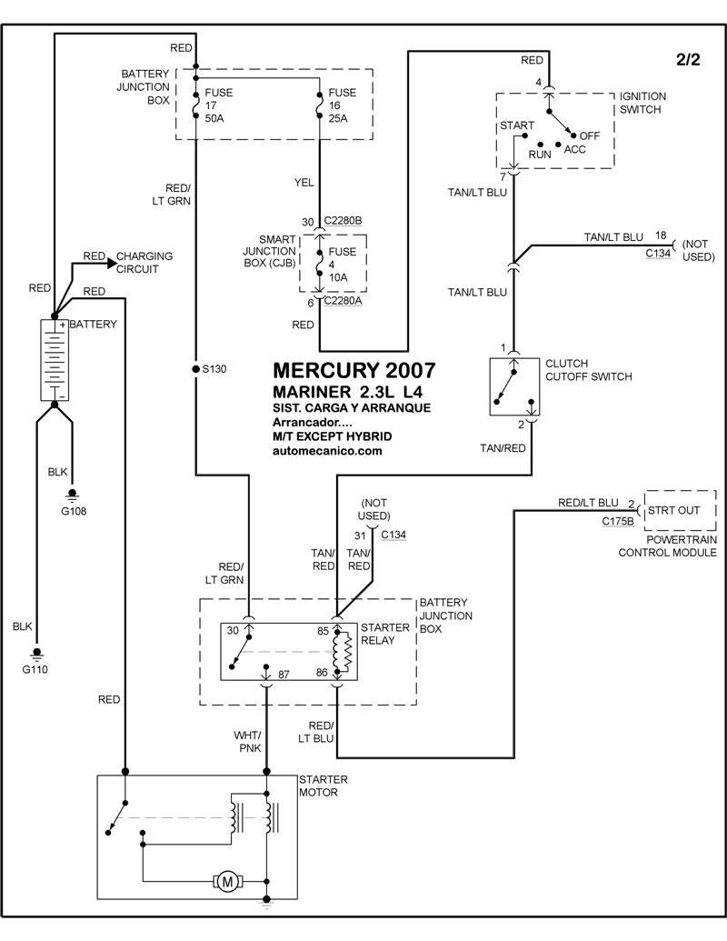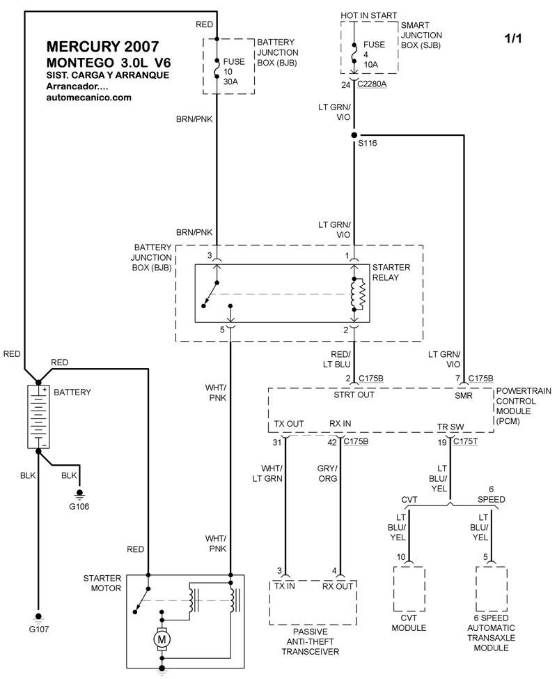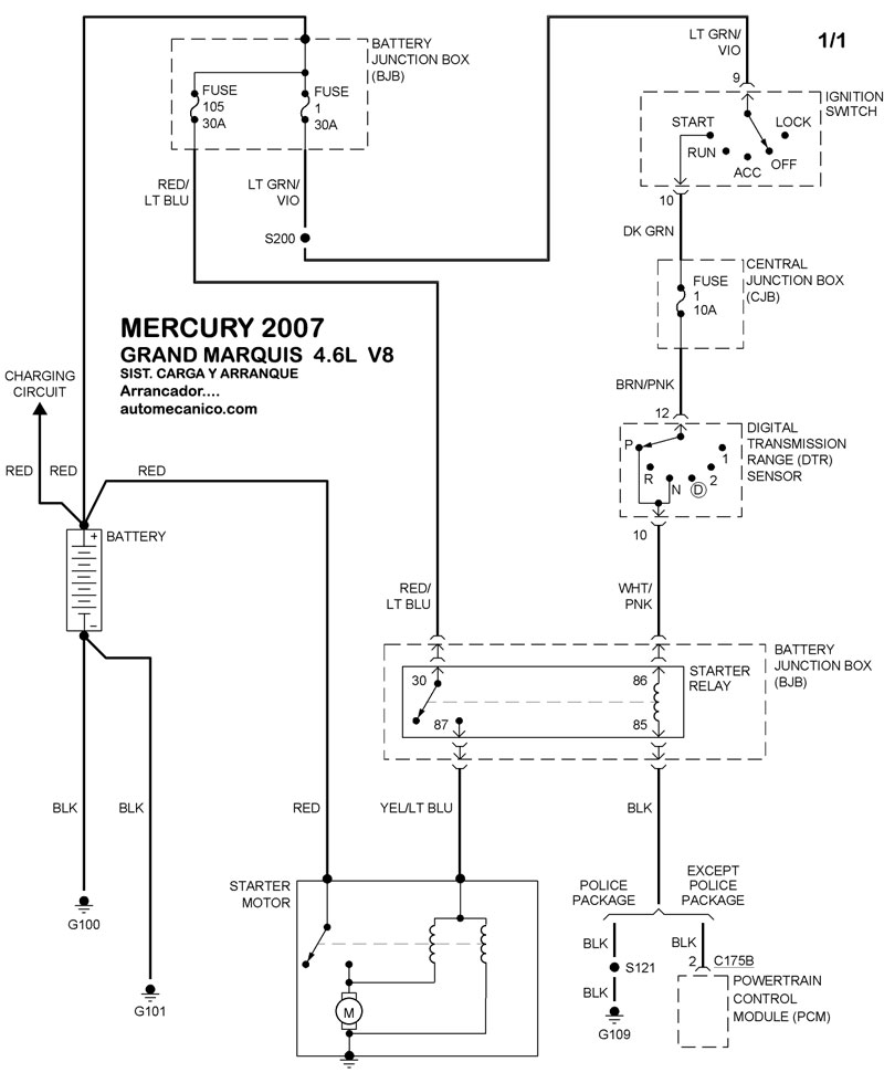 | DIAGRAMAS - SISTEMA DE CARGA Y ARRANQUE - MERCURY 2007 - Mecanica Automotriz - INDICE |