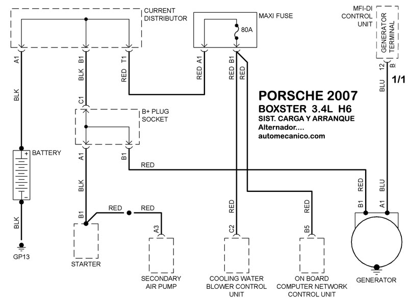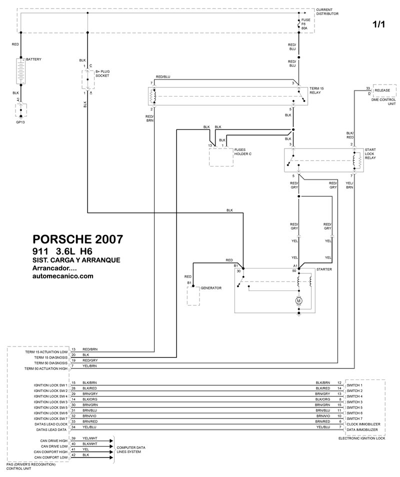 | DIAGRAMAS - SISTEMA DE CARGA Y ARRANQUE - PORSCHE 2007 - Mecanica Automotriz - INDICE |