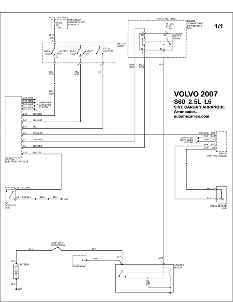 | DIAGRAMAS - SISTEMA DE CARGA Y ARRANQUE - VOLVO 2007 - Mecanica Automotriz - INDICE |