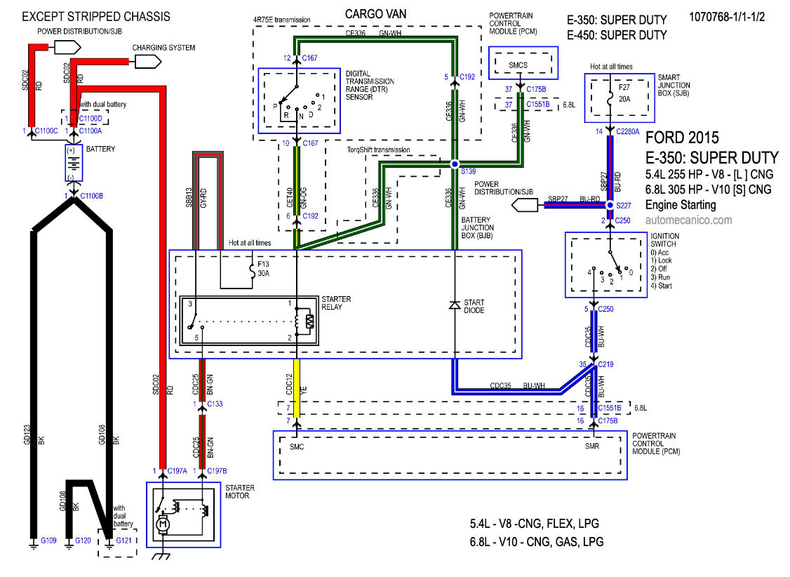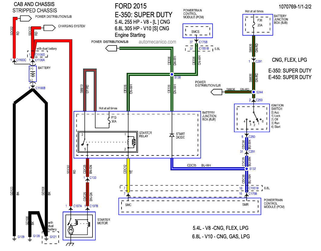 FORD 2015 En estos diagramas se describen los circuitos que conectan y activan el funcionamiento del Arrancador [Starter, motor de arranque] |