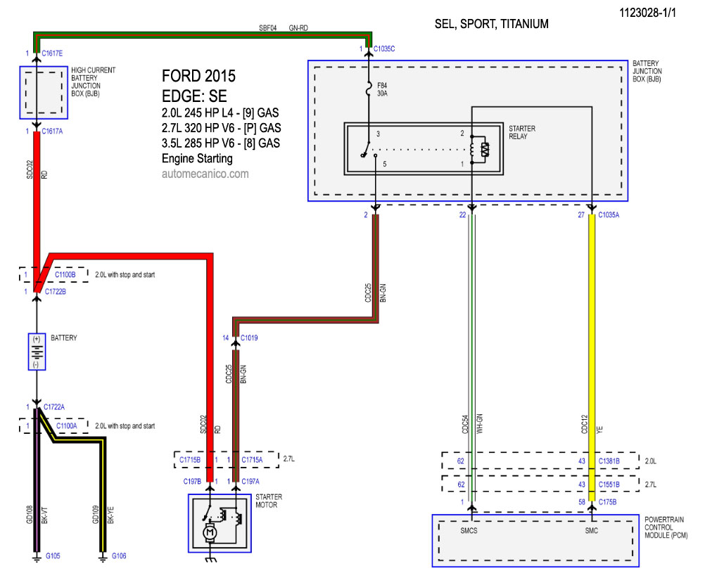 | DIAGRAMAS - CIRCUITO DE ARRANQUE DEL MOTOR - FORD 2015 - Mecanica Automotriz - INDICE |
