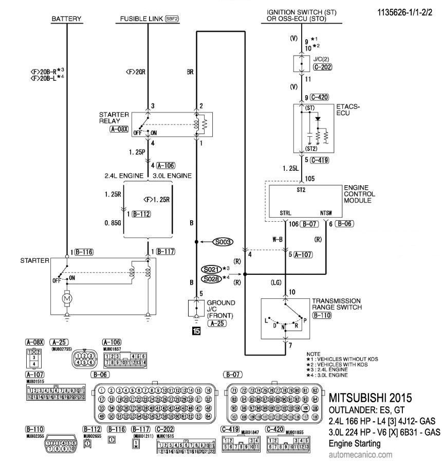 | DIAGRAMAS - CIRCUITO DE ARRANQUE DEL MOTOR - MITSUBISHI 2015 - Mecanica Automotriz - INDICE |