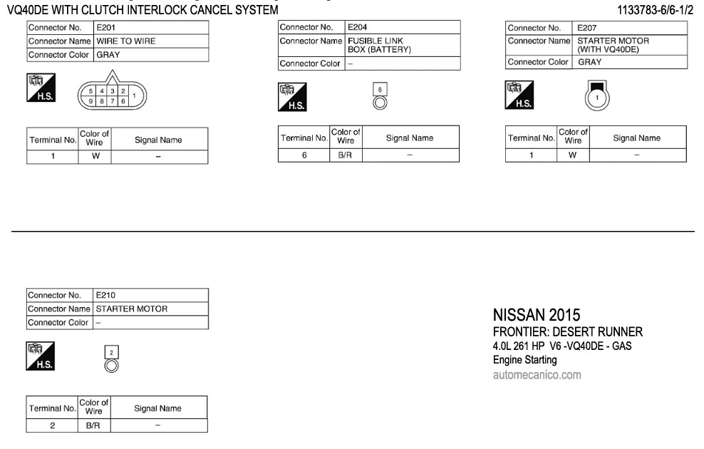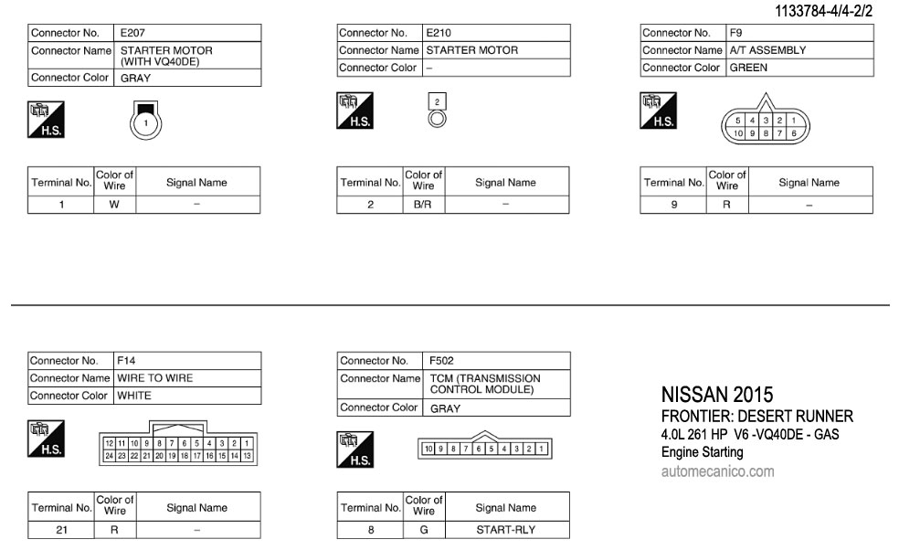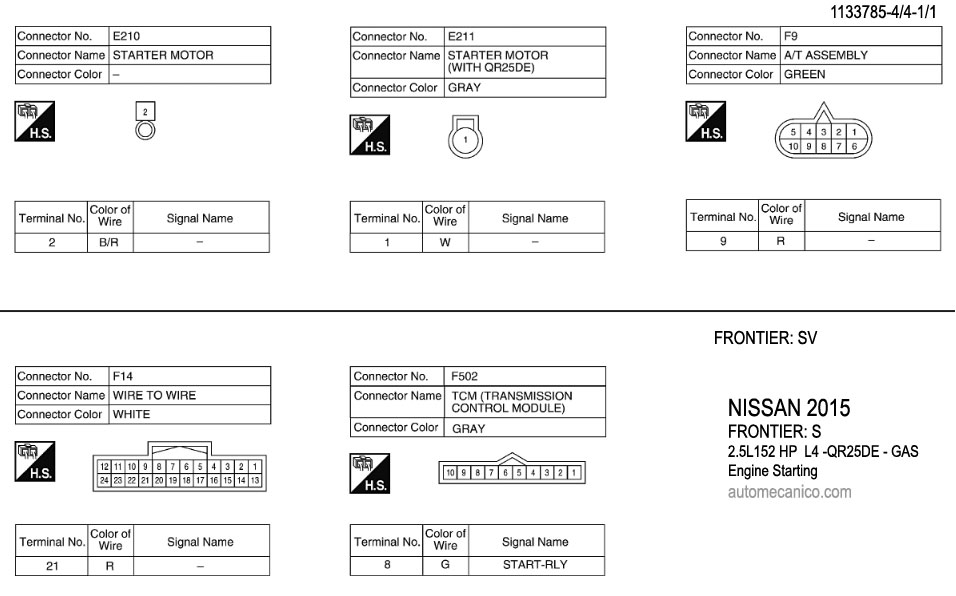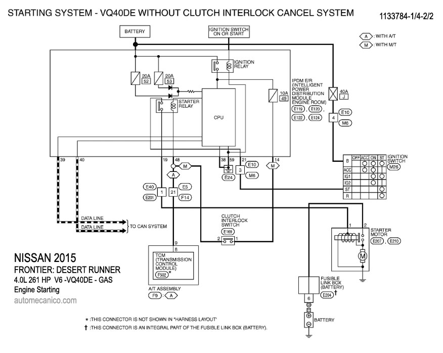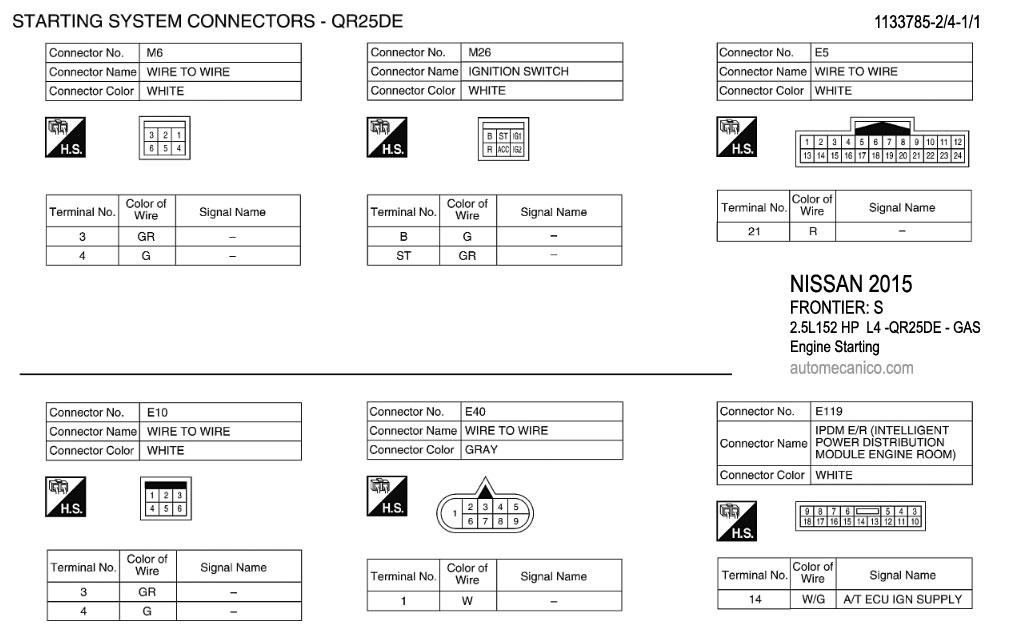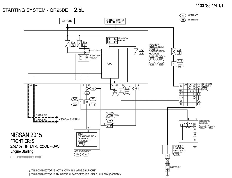 NISSAN 2015 En estos diagramas se describen los circuitos que conectan y activan el funcionamiento del Arrancador [Starter, motor de arranque] |