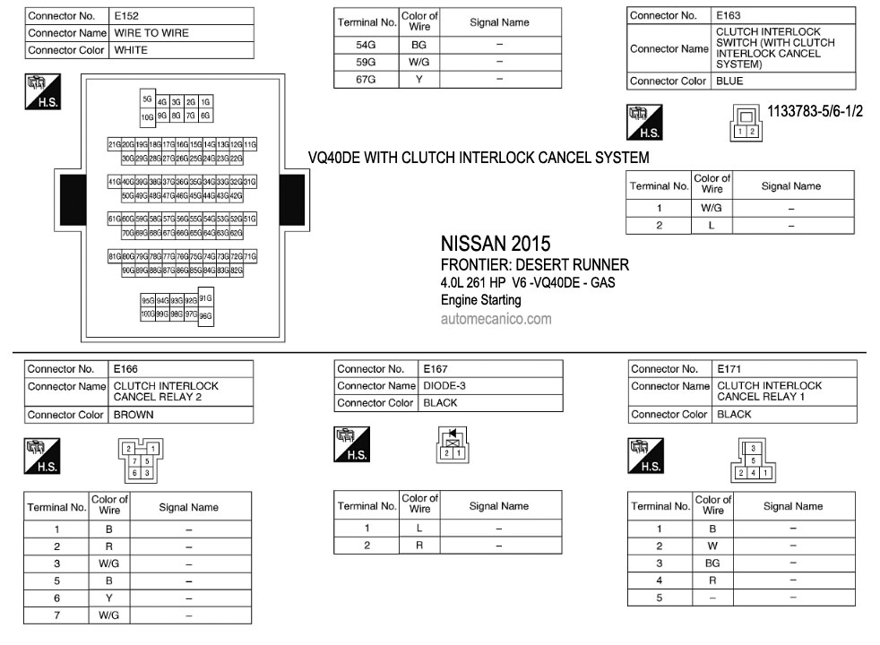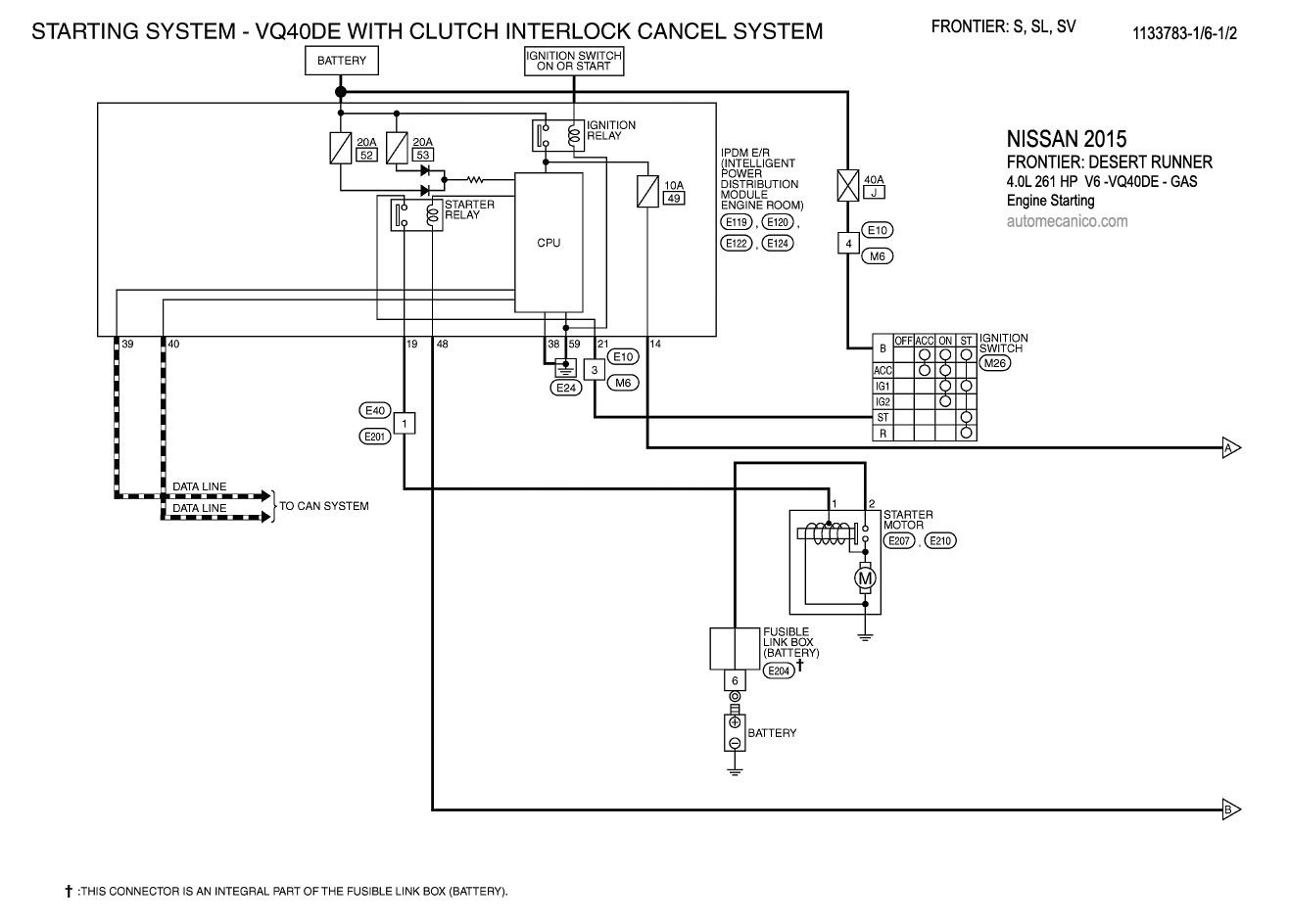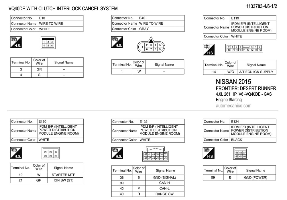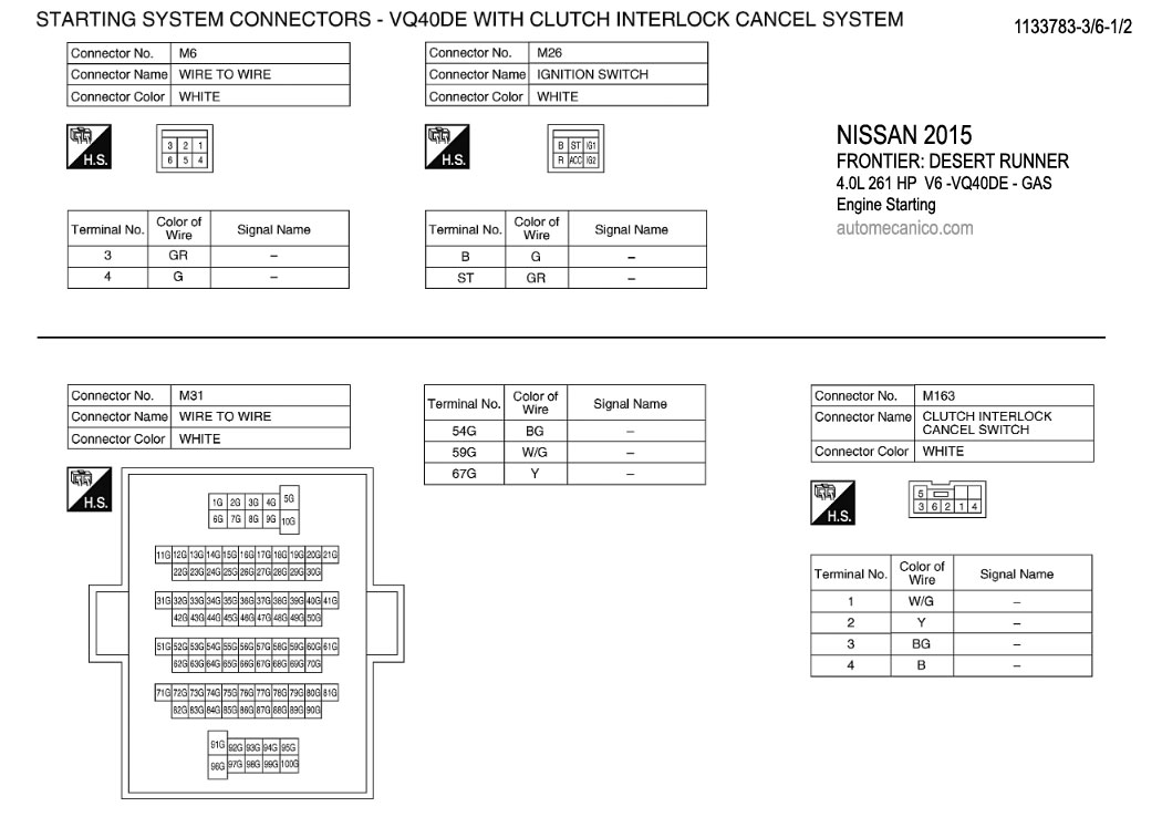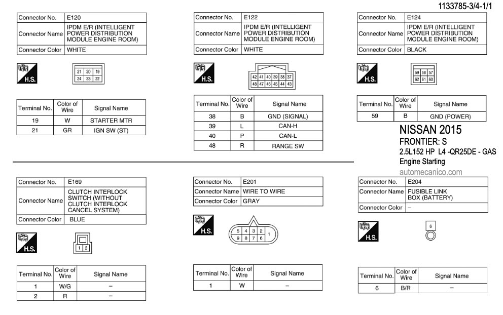 NISSAN 2015 En estos diagramas se describen los circuitos que conectan y activan el funcionamiento del Arrancador [Starter, motor de arranque] |