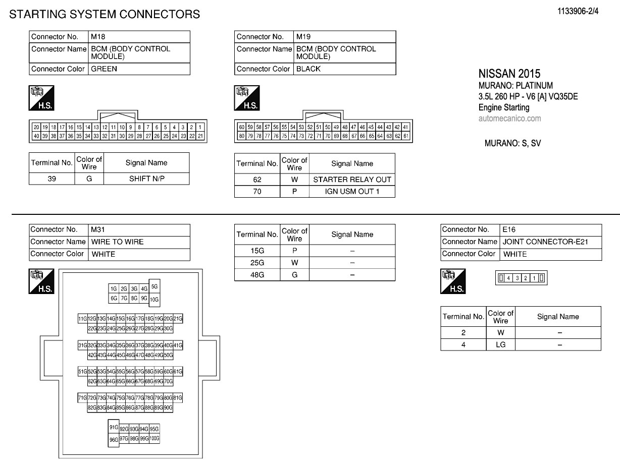 | DIAGRAMAS - CIRCUITO DE ARRANQUE DEL MOTOR - NISSAN 2015 - Mecanica Automotriz - INDICE |