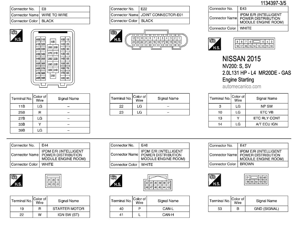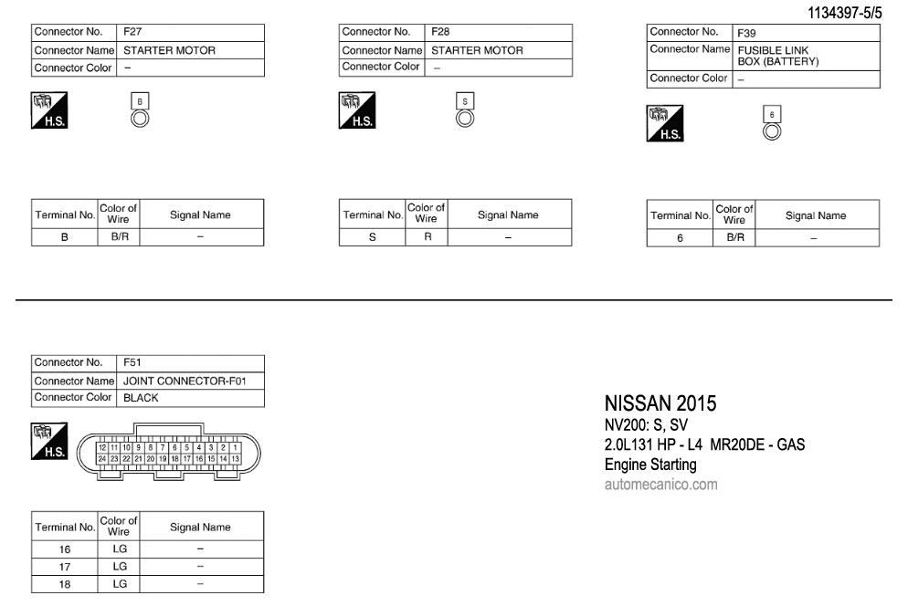 NISSAN 2015 En estos diagramas se describen los circuitos que conectan y activan el funcionamiento del Arrancador [Starter, motor de arranque] |