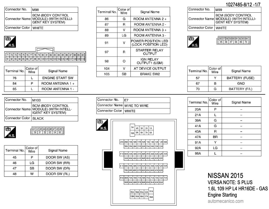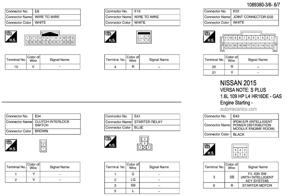| Los Diagramas, listados abajo, se refieren unicamente al Circuito electrico que involucra: Arrancador [starter] - NISSAN 2015 - Arrancador = Starter, Motor de arranque - |