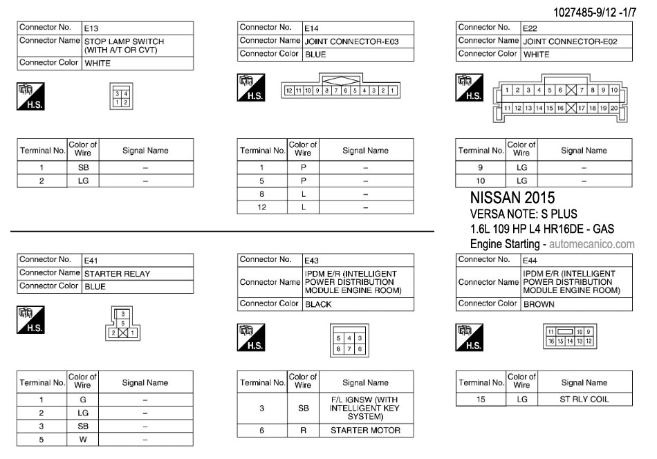 | DIAGRAMAS - CIRCUITO DE ARRANQUE DEL MOTOR - NISSAN 2015 - Mecanica Automotriz - INDICE |