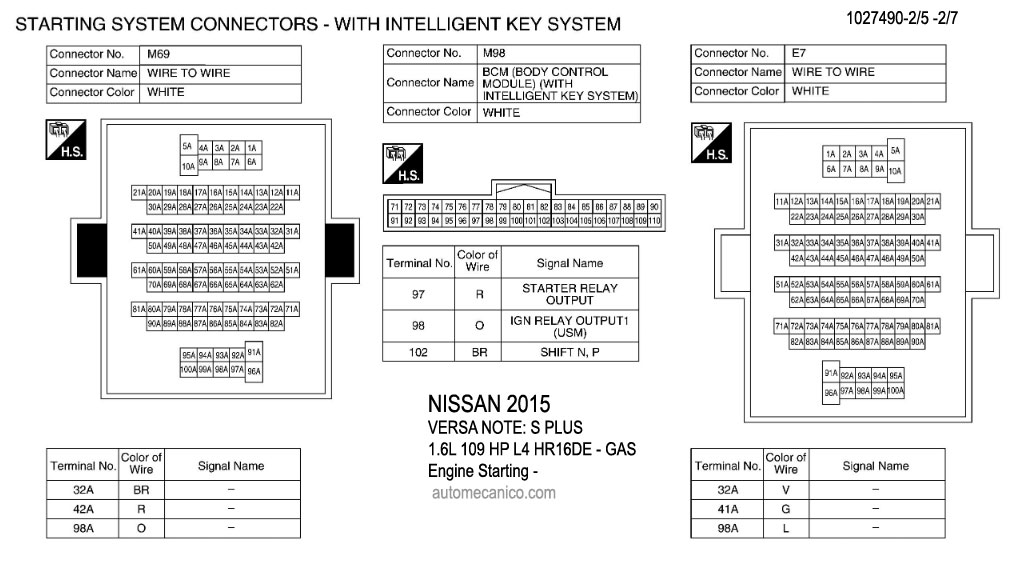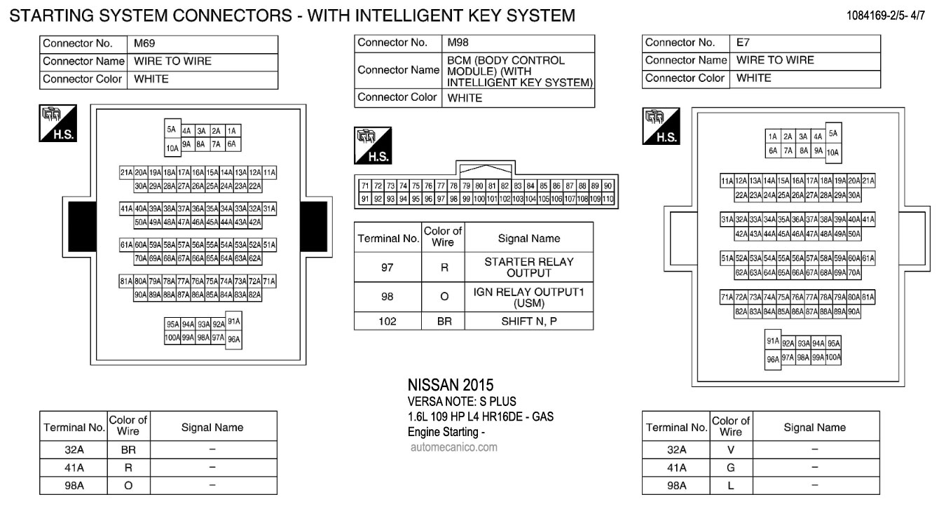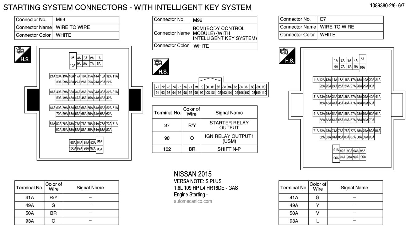 NISSAN 2015 En estos diagramas se describen los circuitos que conectan y activan el funcionamiento del Arrancador [Starter, motor de arranque] |
