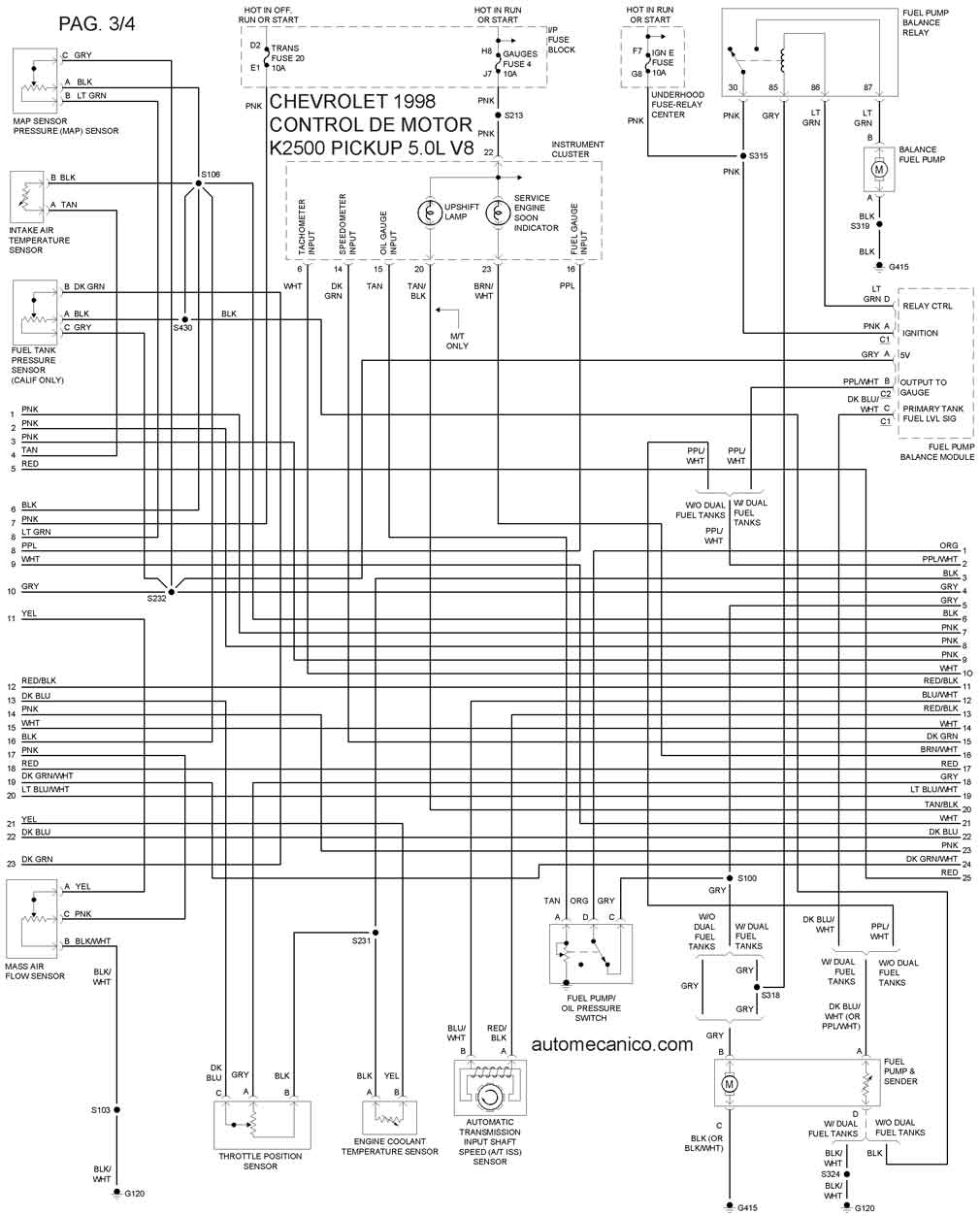 | DIAGRAMAS Control del motor / CHEVROLET: K2500 PICK-UP - 1998 - |