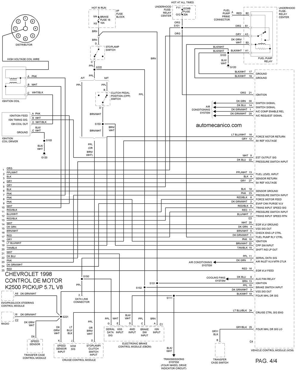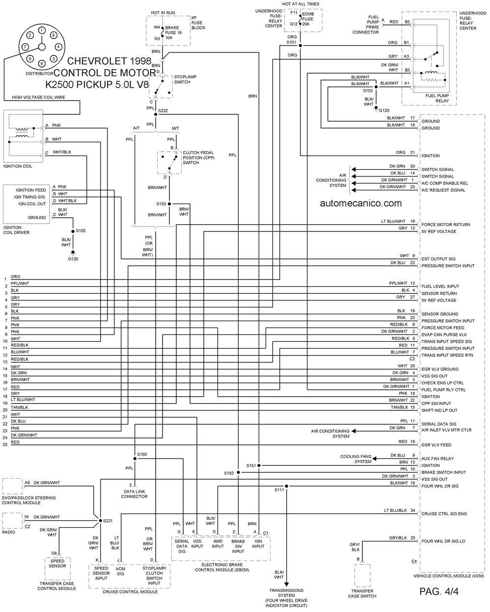 | 1998 | K2500 PICKUP 5.0L V8 | CONTROL DEL MOTOR 2/4 |