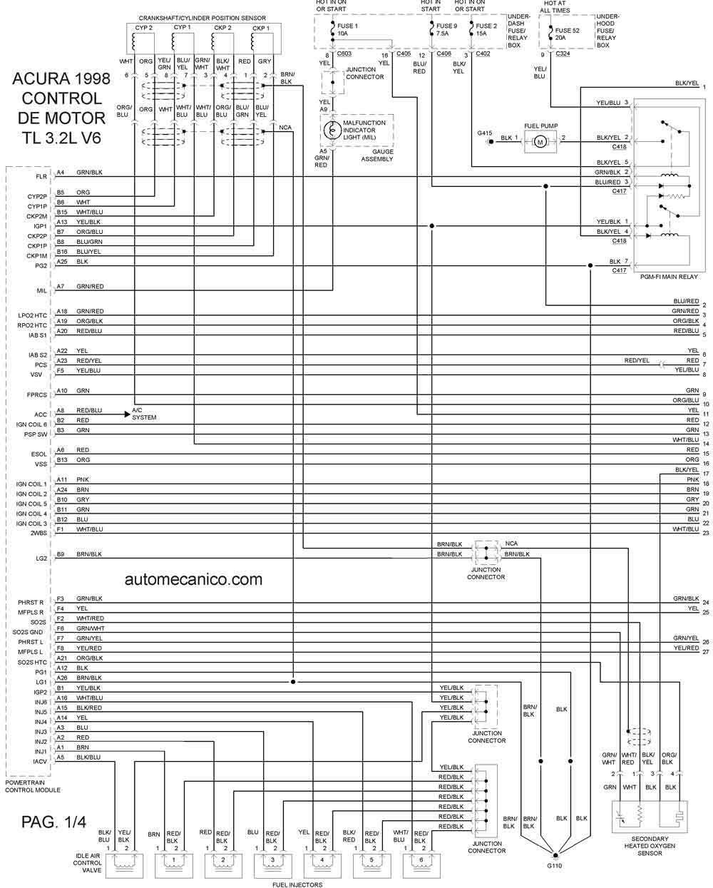 | 1998 | TL - 3.2L V6 | CONTROL DEL MOTOR 2/4 |