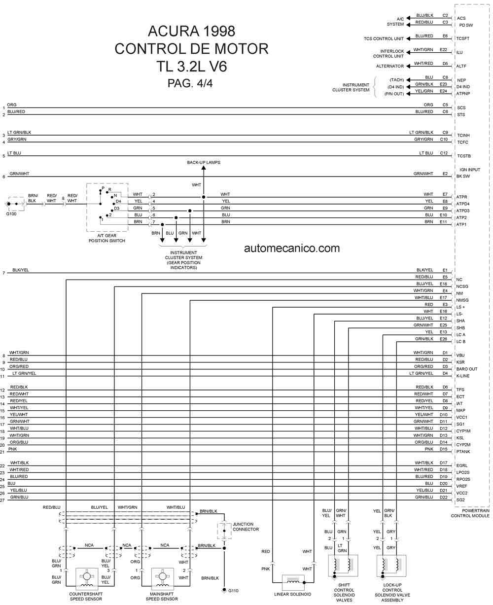 | 1998 | TL - 3.2L V6 | CONTROL DEL MOTOR 4/4 |