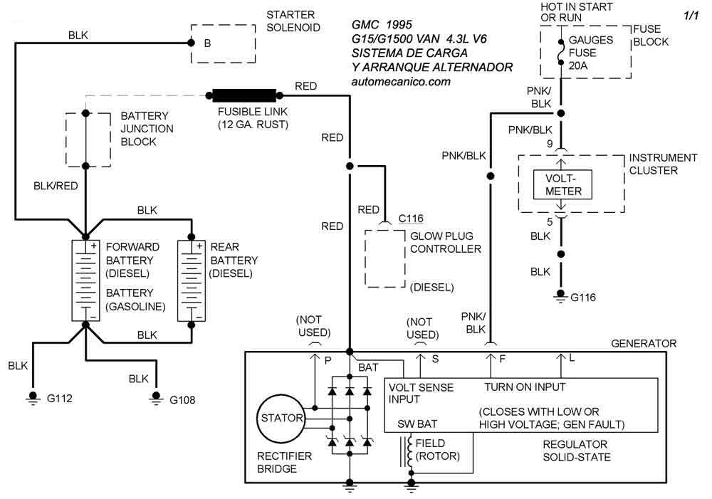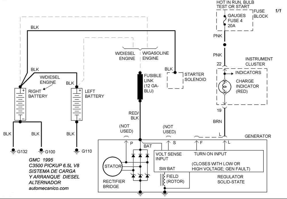 | Los Diagramas, listados abajo, se refieren unicamente al Circuito electrico que involucra: Alternador [Generador] y/o; Arrancador [Motor de arranque, Marcha, Starter] - INDICE: GMC - 1995 - |