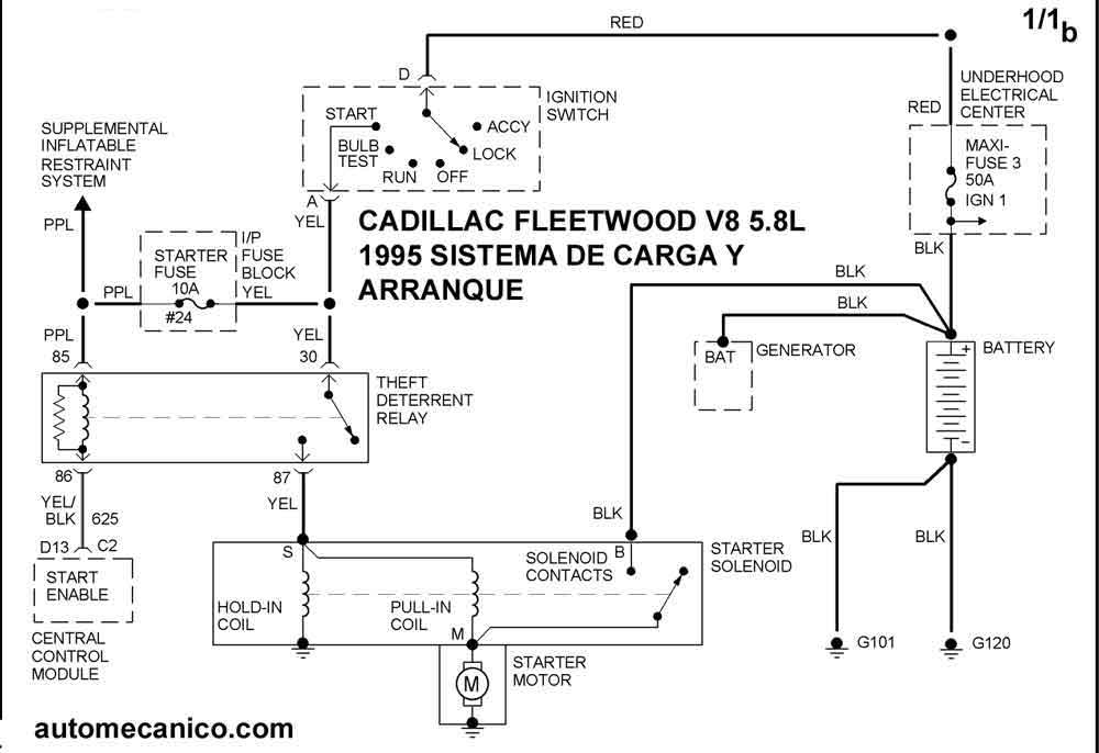 | Los Diagramas, listados abajo, se refieren unicamente al Circuito electrico que involucra: Alternador [Generador] y/o; Arrancador [Motor de arranque, Marcha, Starter] - INDICE: CADILLAC - 1995 - |