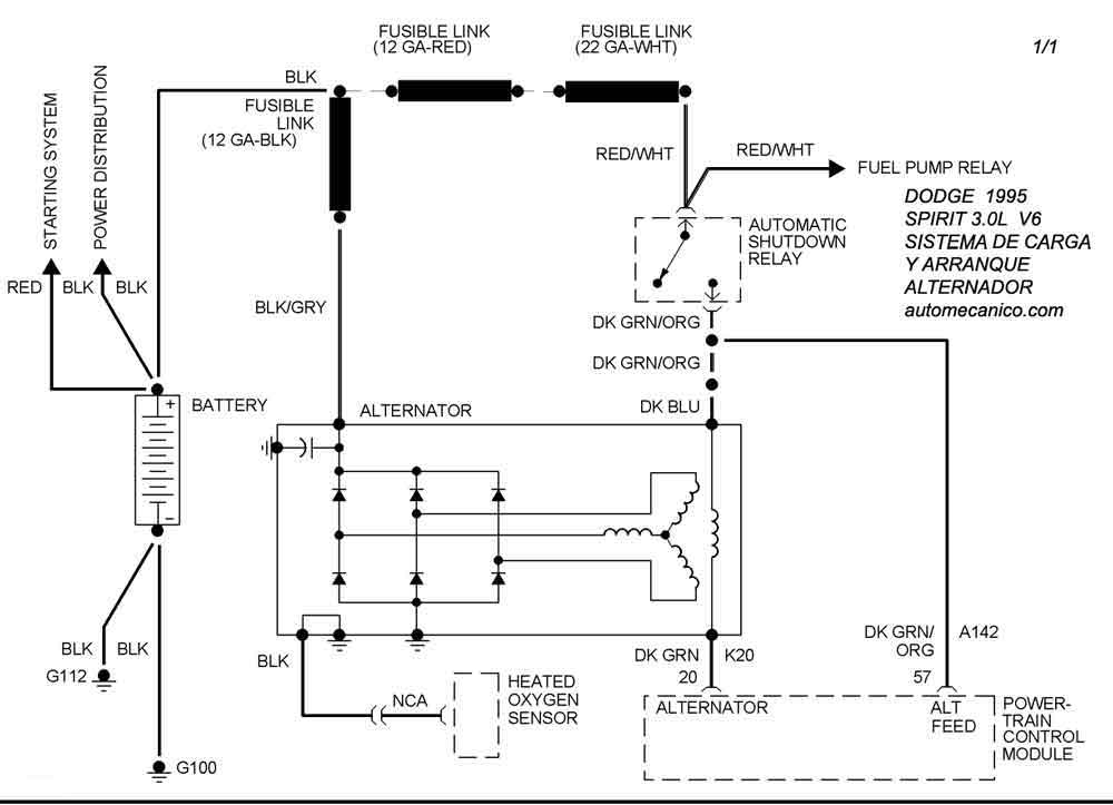 | Los Diagramas, listados abajo, se refieren unicamente al Circuito electrico que involucra: Alternador [Generador] y/o; Arrancador [Motor de arranque, Marcha, Starter] - INDICE: DODGE - 1995 - |