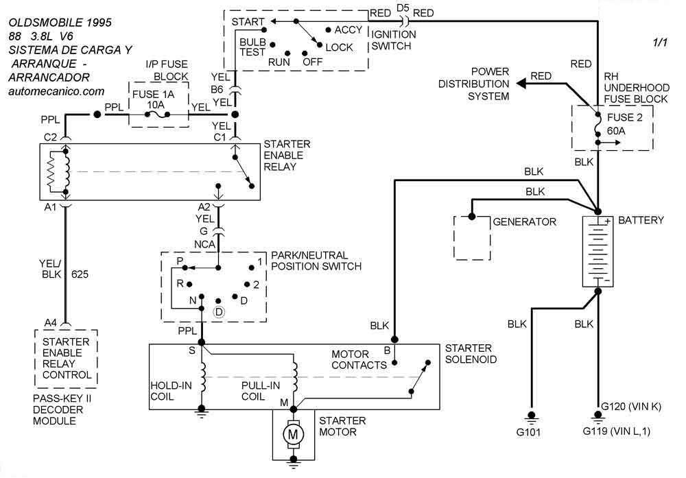 | Los Diagramas, listados abajo, se refieren unicamente al Circuito electrico que involucra: Alternador [Generador] y/o; Arrancador [Motor de arranque, Marcha, Starter] - INDICE: OLDSMOBILE - 1995 - |