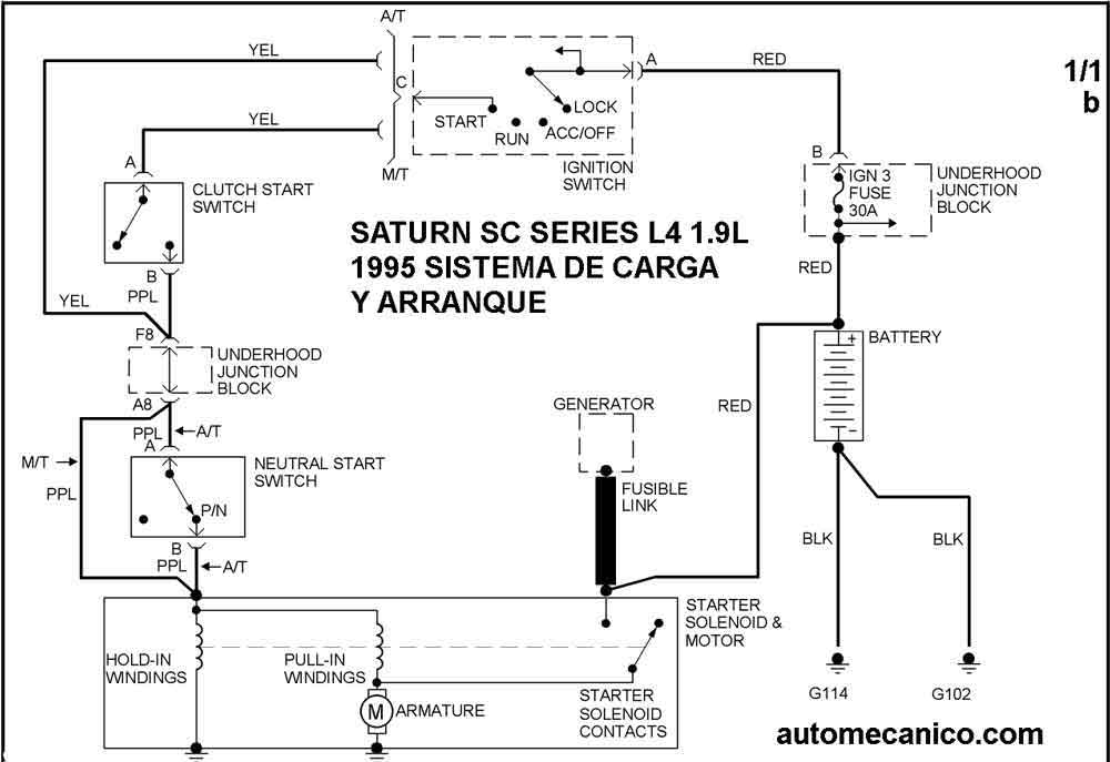 | Los Diagramas, listados abajo, se refieren unicamente al Circuito electrico que involucra: Alternador [Generador] y/o; Arrancador [Motor de arranque, Marcha, Starter] - INDICE: SATURN - 1995 - |