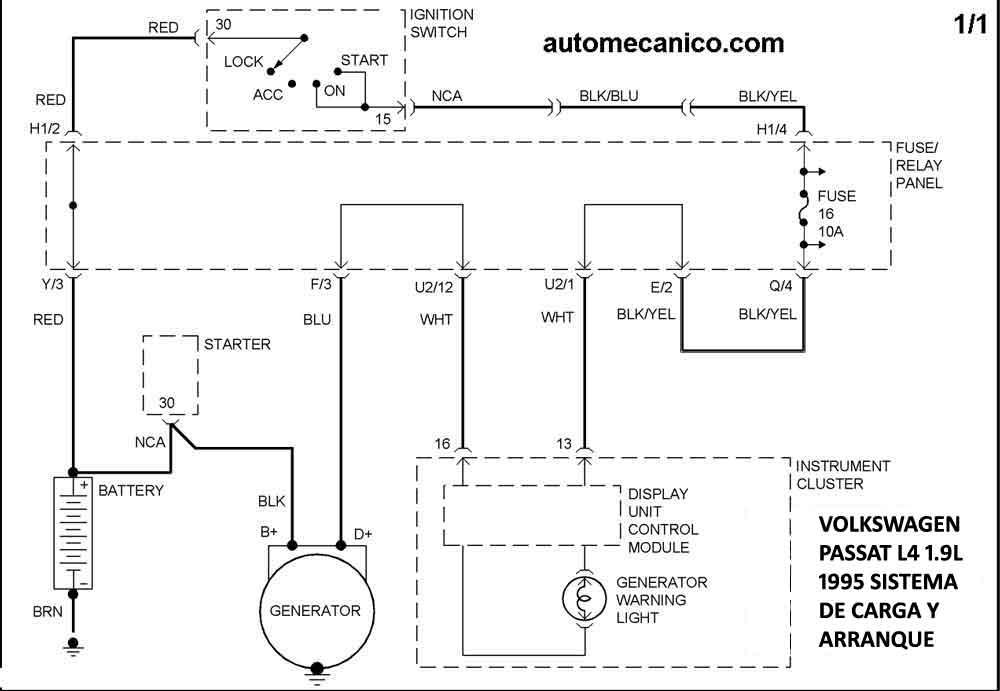 Diagramas VOLKSWAGEN : Carga y Arranque | Charging and Starting System: - Esquemas - Graphics 1995 - |
