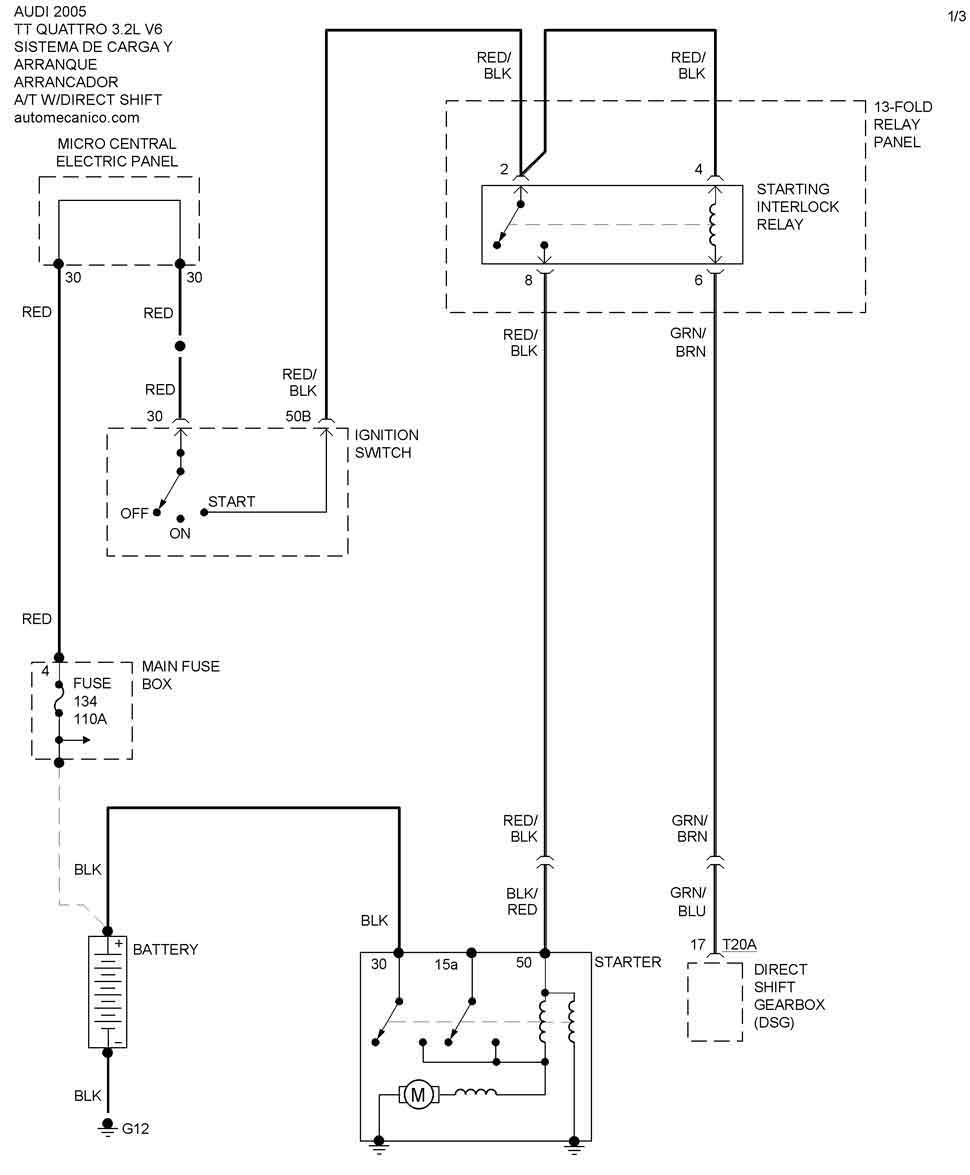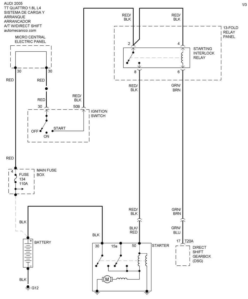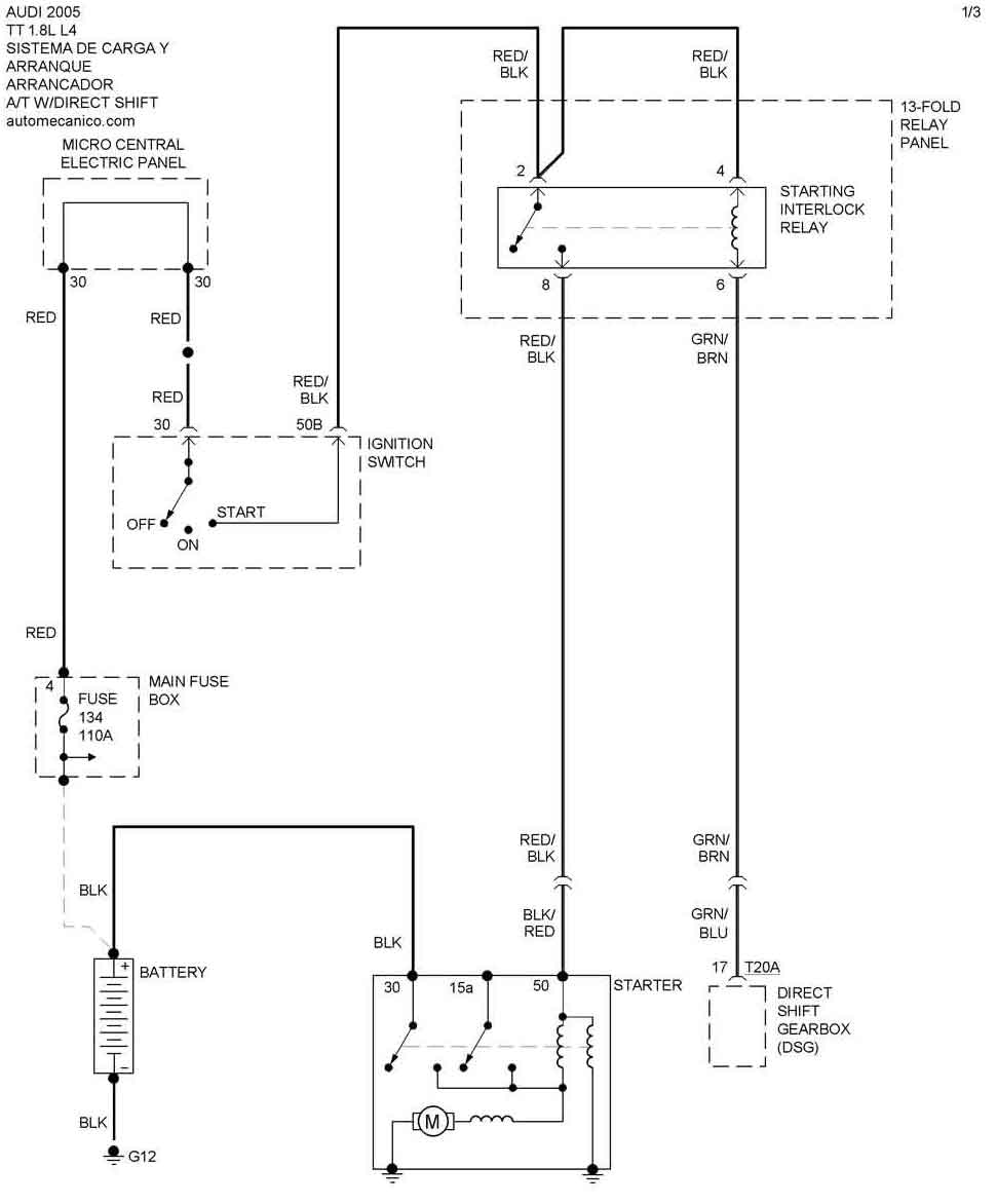 | Los Diagramas, listados abajo, se refieren unicamente al Circuito electrico que involucra: Alternador [Generador] y/o; Arrancador [Motor de arranque, Marcha, Starter] - INDICE: AUDI - 2005- |