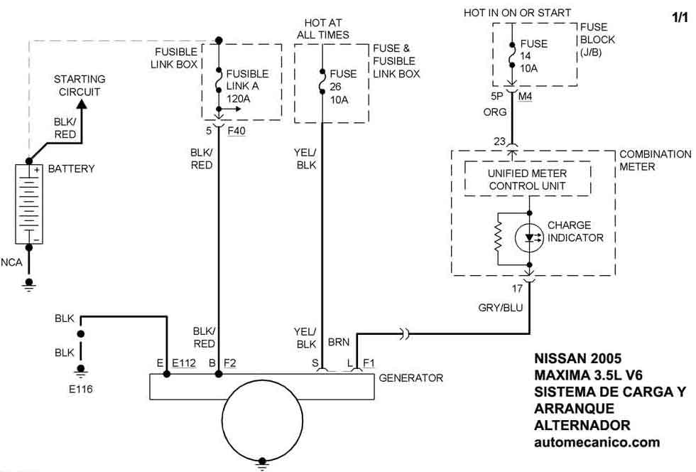 Diagramas NISSAN : Carga y Arranque | Charging and Starting System: - Esquemas - Graphics 2005 - |