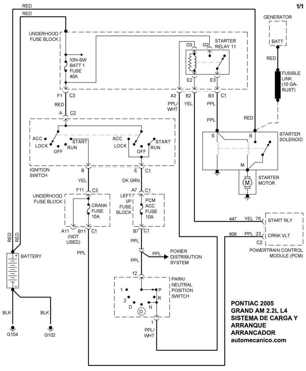 | Los Diagramas, listados abajo, se refieren unicamente al Circuito electrico que involucra: Alternador [Generador] y/o; Arrancador [Motor de arranque, Marcha, Starter] - INDICE: PONTIAC - 2005 - |