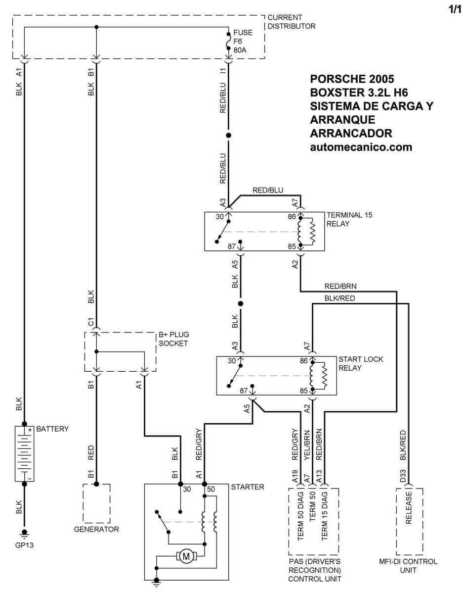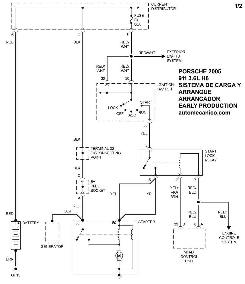 Diagramas PORSCHE : Carga y Arranque | Charging and Starting System: - Esquemas - Graphics 2005 - |