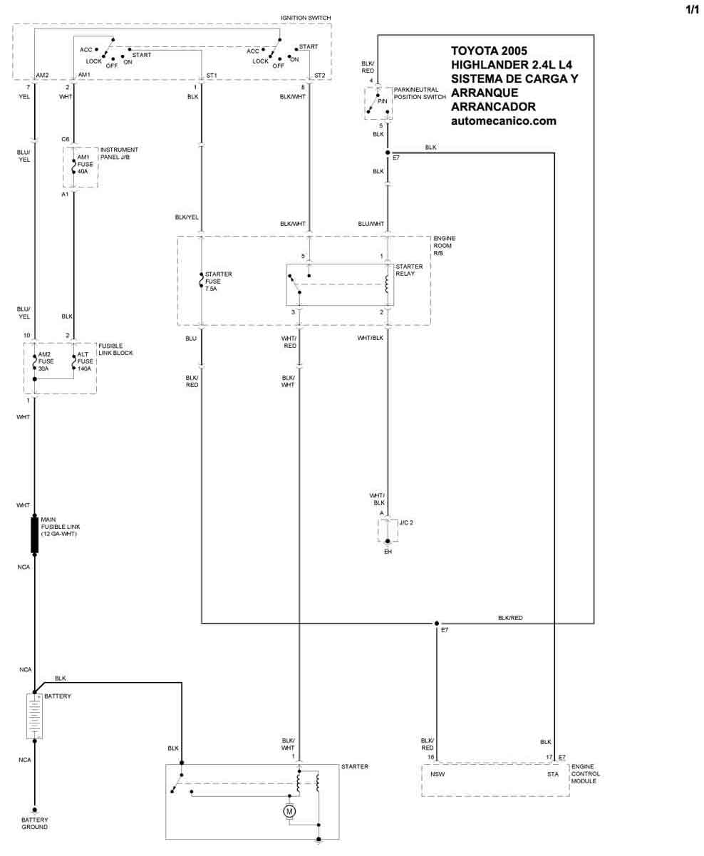 | 2005 | HIGHLANDER - 3.3L V6 | SIST. DE CARGA | SIST. DE ARRANQUE |