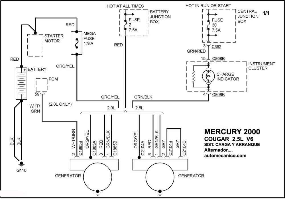 | 2000 | COUGAR - 2.0L L4 | SIST. DE CARGA | SIST. DE ARRANQUE |