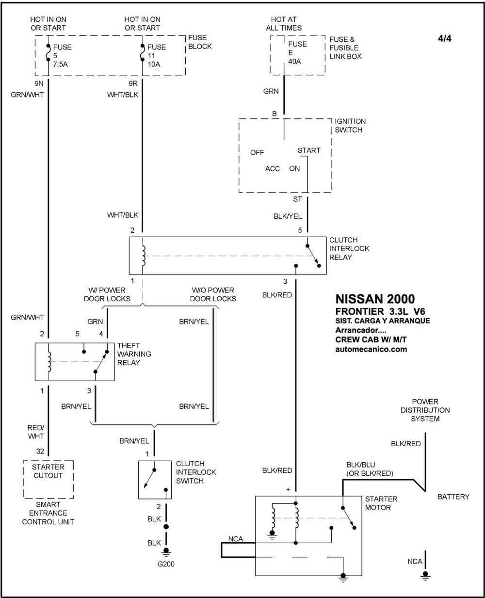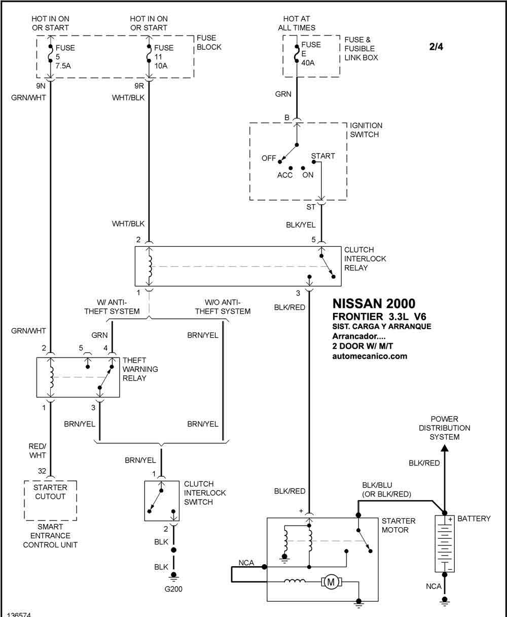 | 2000 | FRONTIER - 2.4L L4 | SIST. DE CARGA ( CREW CAB ) | SIST. DE ARRANQUE T/A |