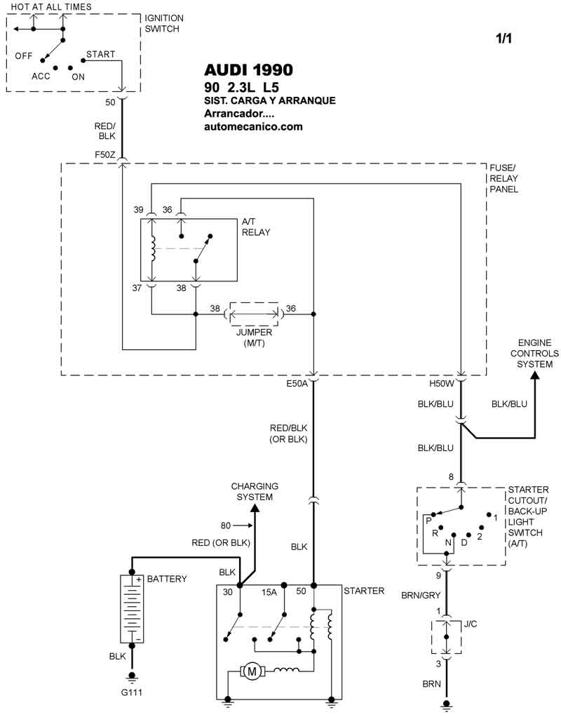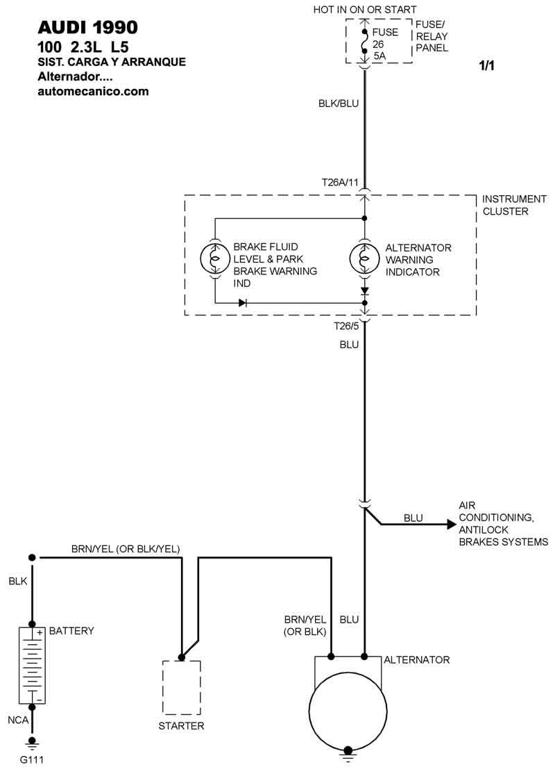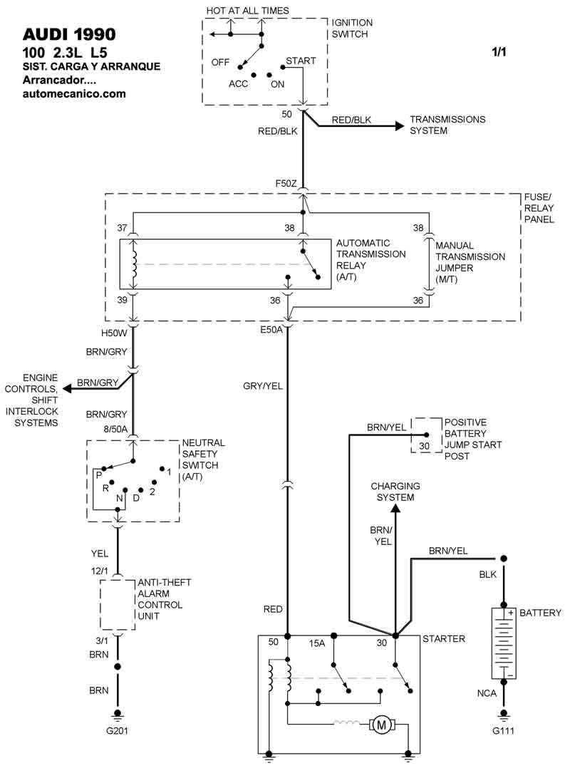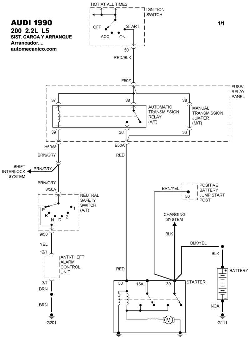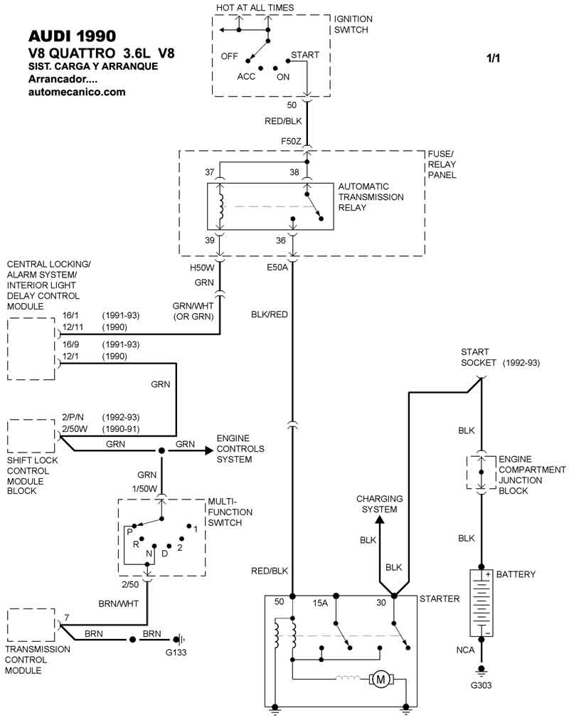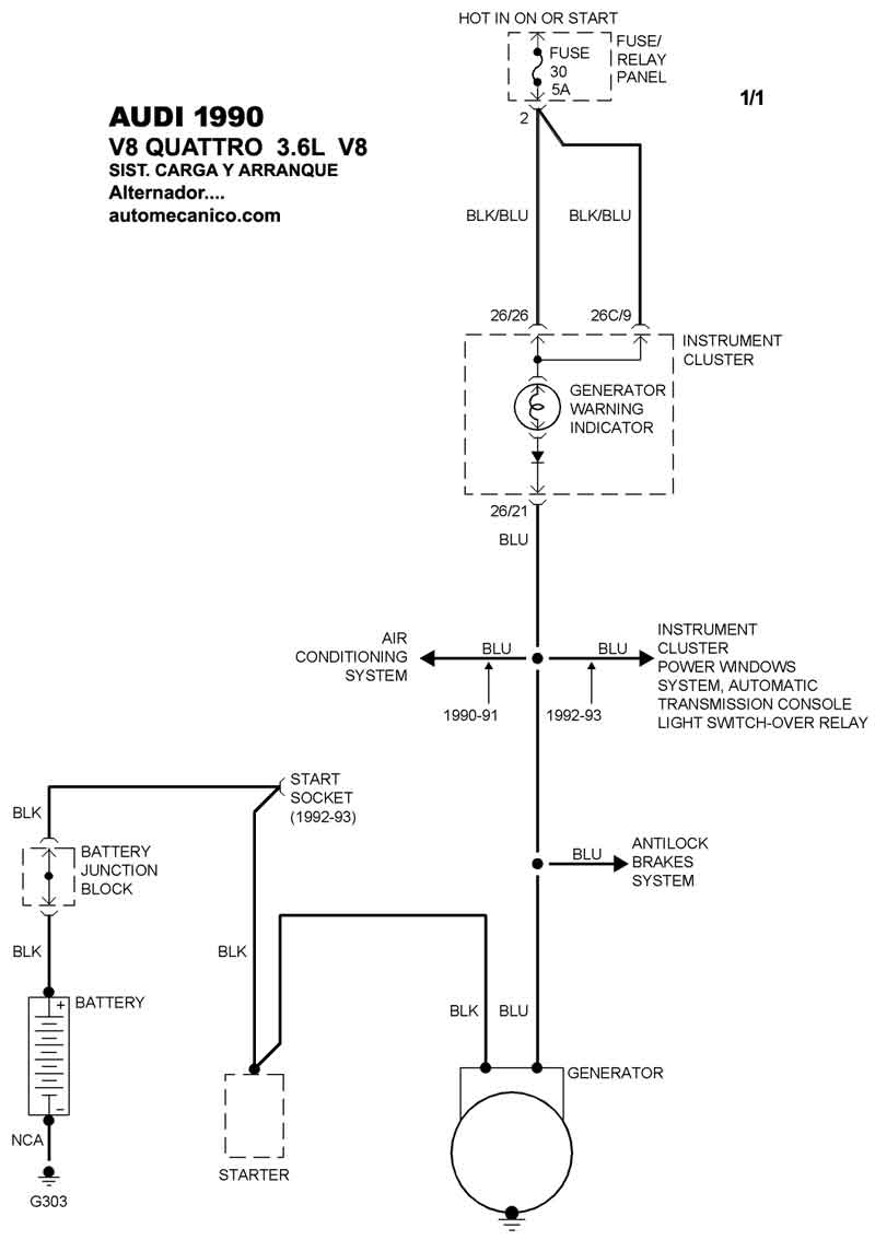 Diagramas AUDI : Carga y Arranque | Charging and Starting System: - Esquemas - Graphics 1990 - |