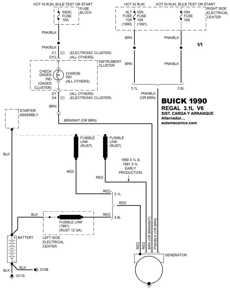 Diagramas BUICK : Carga y Arranque | Charging and Starting System: - Esquemas - Graphics 1990 - |