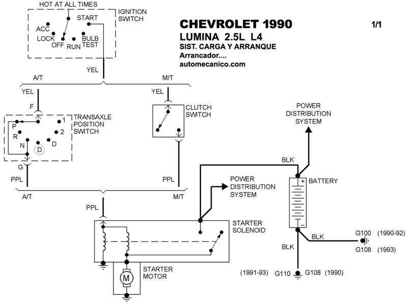 | 1990 | LUMINA - 2.5L L4 CIL. | SIST. DE CARGA | SIST. DE ARRANQUE T/A |