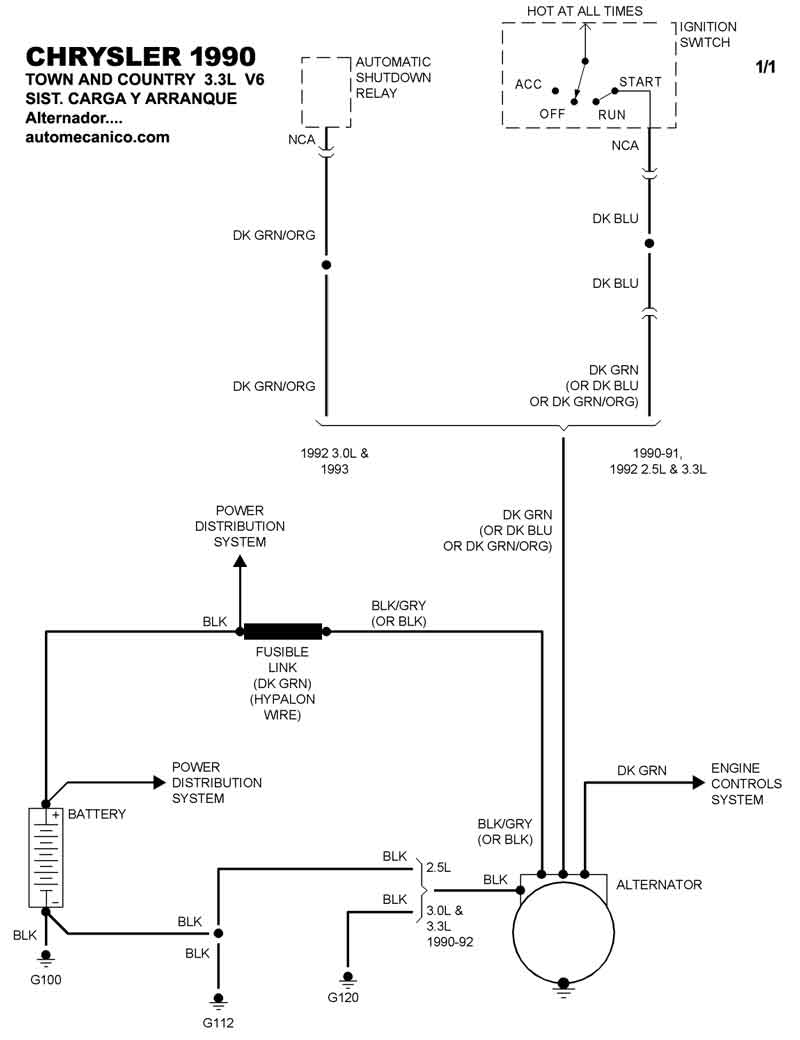 | 1990 | TOWN AND COUNTRY 3.3L V6 CIL | SIST. DE CARGA | SIST. DE ARRANQUE T/A |