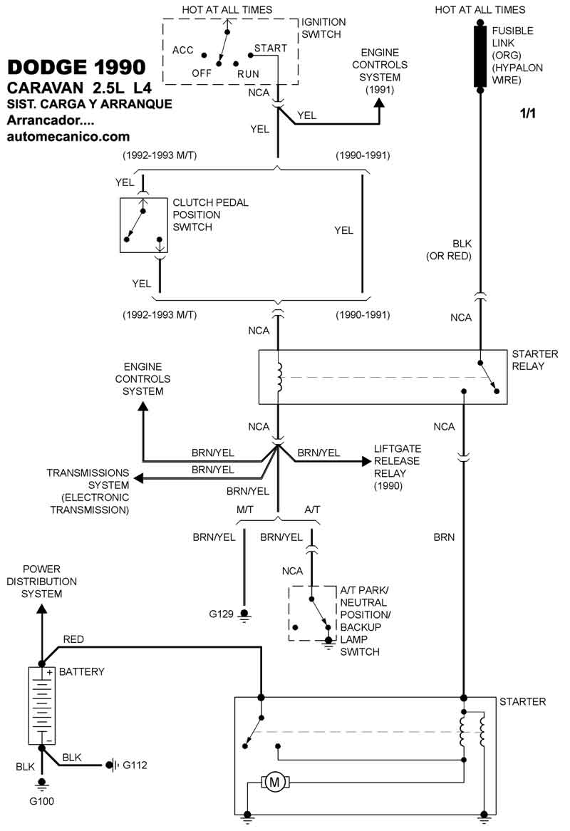 Diagramas DODGE : Carga y Arranque | Charging and Starting System: - Esquemas - Graphics 1990 - |