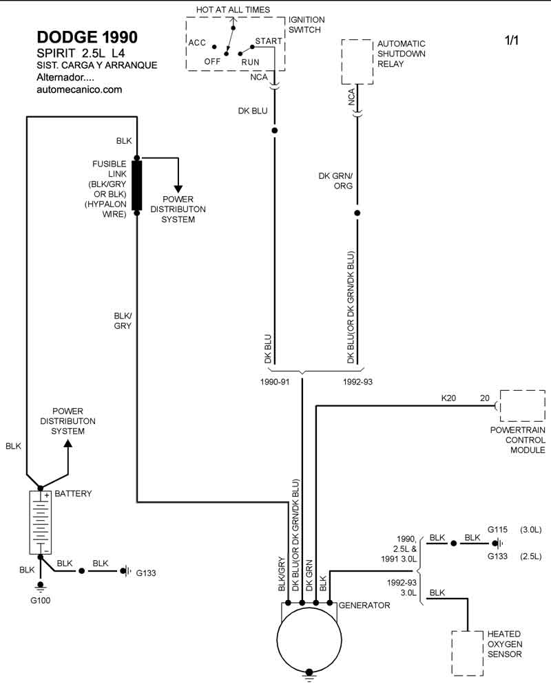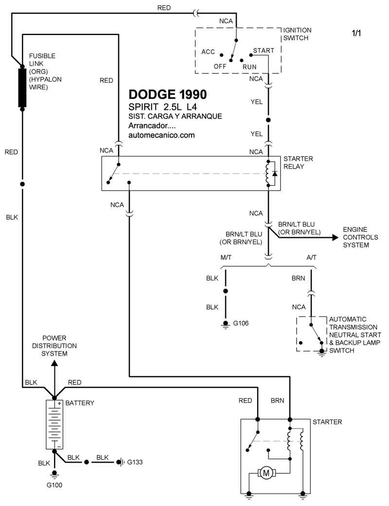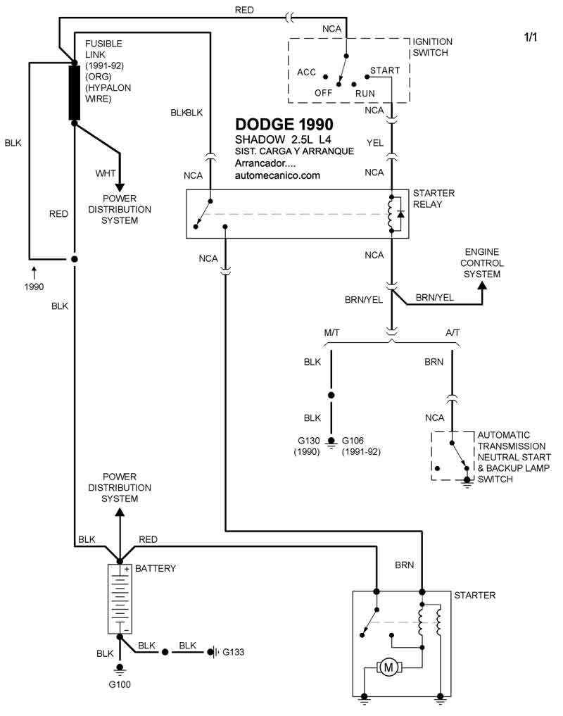 Diagramas DODGE : Carga y Arranque | Charging and Starting System: - Esquemas - Graphics 1990 - |