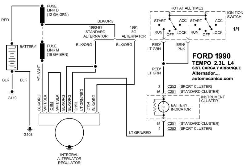 | 1990 | TEMPO - 2.3L 4 CIL. | SIST. DE CARGA | SIST. DE ARRANQUE T/A |