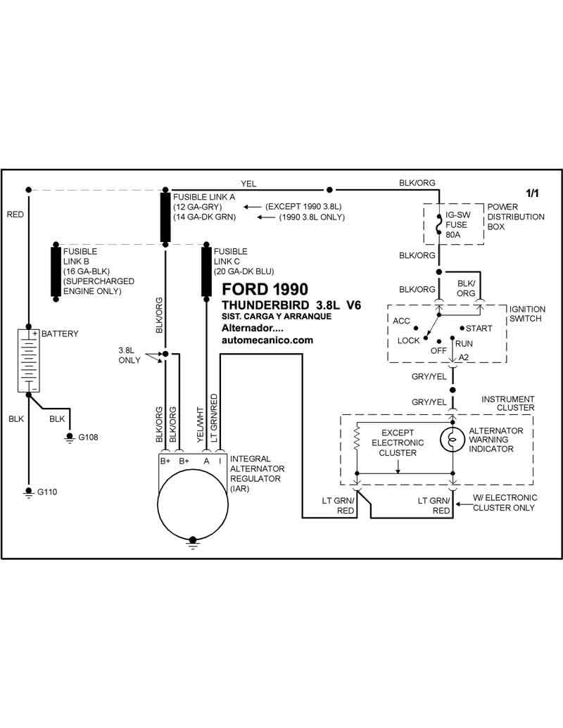 | 1990 | THUNDERBIRD - 3.8L V6 CIL. | SIST. DE CARGA | SIST. DE ARRANQUE T/A |