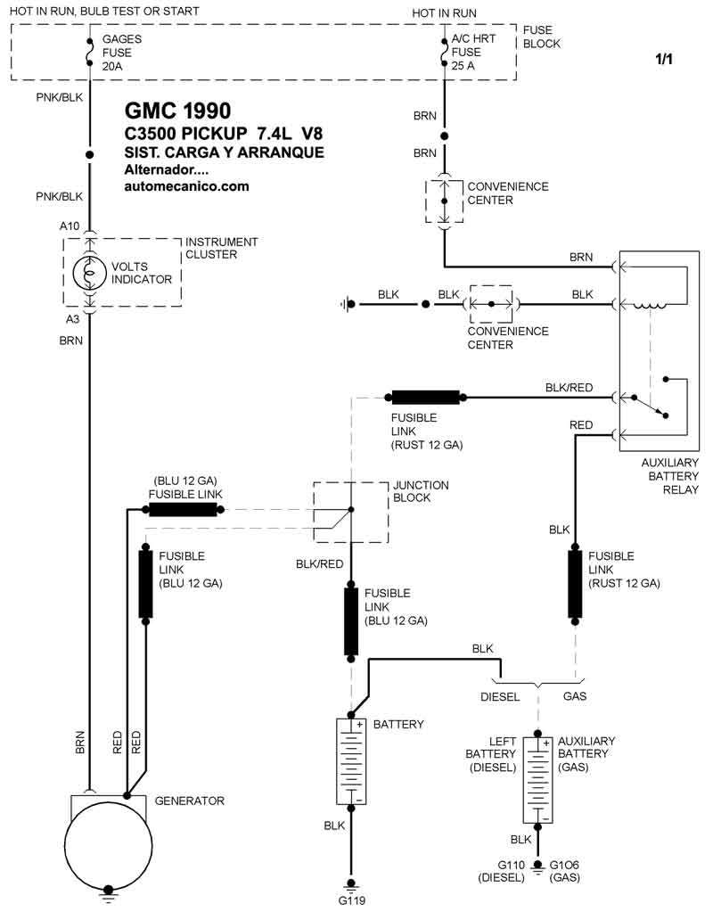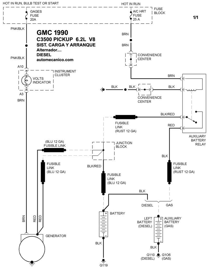 | Los Diagramas, listados abajo, se refieren unicamente al Circuito electrico que involucra: Alternador [Generador] y/o; Arrancador [Motor de arranque, Marcha, Starter] - INDICE: GMC - 1990 - |