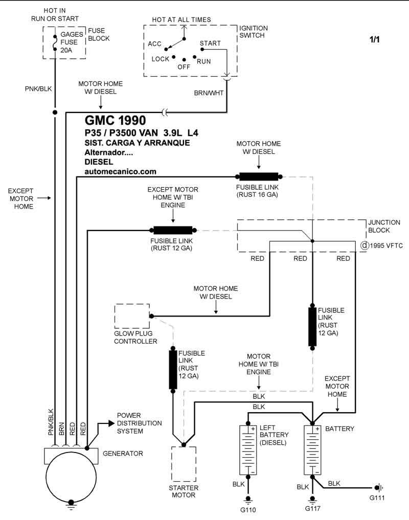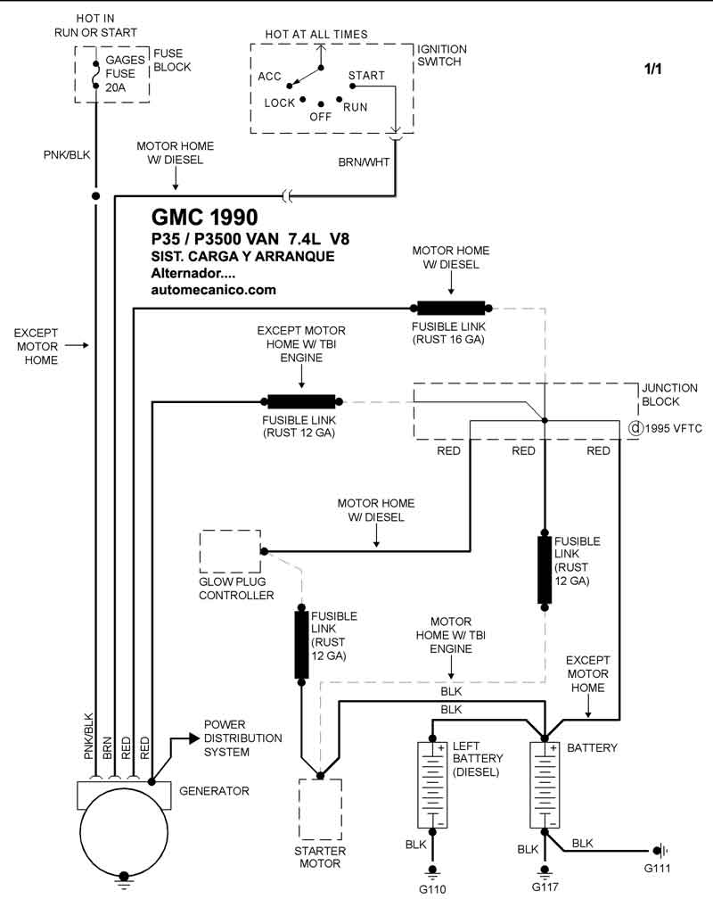 | Los Diagramas, listados abajo, se refieren unicamente al Circuito electrico que involucra: Alternador [Generador] y/o; Arrancador [Motor de arranque, Marcha, Starter] - INDICE: GMC - 1990 - |
